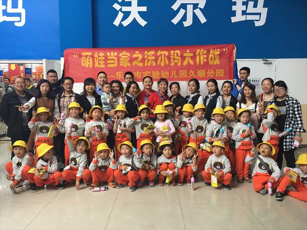 为了让幼儿在生活中成长,提高他们交往、解决问题的能力,促进生活素养的启蒙,近期,市实幼久顺分园大三班的小宝贝们开展了一次有意义的社会实践活动——“萌娃当家之沃尔玛大作战”!把超市当作宝贝的第二课堂,让宝贝们体验了超市叔叔阿姨工作的辛苦以及自主购物的快乐感。 活动当天,每个宝贝们兴高采烈的带上30元钱和购物袋,出发啦!下午1:30分,孩子们和爸爸妈妈一起来到了沃尔玛超市,孩子们排着队随着超市主管阿姨、老师从超市入口处进入超市,每走到一个区域,主管阿姨都要向孩子们介绍并提问,区域上方的标志牌上写的是什么(什么区域)?是什么商品?是干什么用的呢?它的价位是多少?