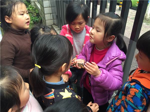 大家自发围在一起为小鸟唱歌:“小燕子,穿花衣,年年春天来这里......”魏子易说:“上次听老师讲的故事里贤贤的小鸡叫贝贝,我们也给小鸟取个名字吧。”“我想起来了,前几天老师给他们讲过一个故事名叫贝贝,再见了”......大家纷纷说了好几个名字“小贝”“小爱”“艾艾”,最后大家同意为小鸟取名叫“艾艾”。孩子们用稚嫩的想法和行为表达对弱小生命的珍惜和敬畏......