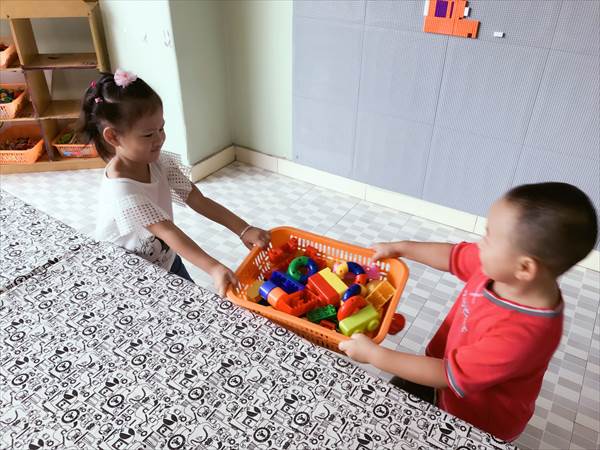 如孩子自己没有找到寻求方案,继续僵持 4、成人:“我想知道谁先端到这篮玩具的呢?”——继续收集信息 5、成人:“他说是他先端到的对吗?不如我带你去走一走,看一看还有没有其它玩具篮没送需要你帮忙的好吗?”