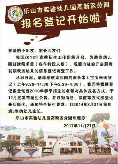 乐山市实验幼儿园高新区分园欢迎您和宝贝的到来!