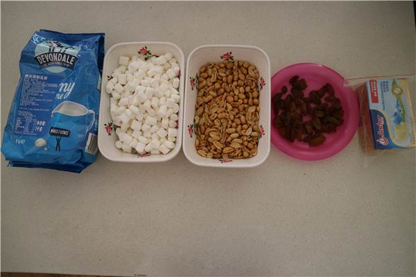 世间万物,唯有美食与爱不可辜负。 提起牛轧糖,相信大家并不陌生。儿时的记忆里,剥开那层浅蓝色的糖纸,将乳白的小方块儿丢进嘴里,轻轻咬一口,满嘴浓郁的奶香和香脆的花生米。这是甜蜜幸福的味道。近日,市实幼开启了一场食育“牛轧糖DIY”活动掀起了一股甜蜜风暴。所谓“食育”,并不是单纯的教孩子吃东西,而是孩子运用五感(形、声、色、味、触)进行的一种体验行为哦。 食材准备:德运奶粉、洛基山无色棉花糖、脆花生、葡萄干(蔓越莓)、黄油