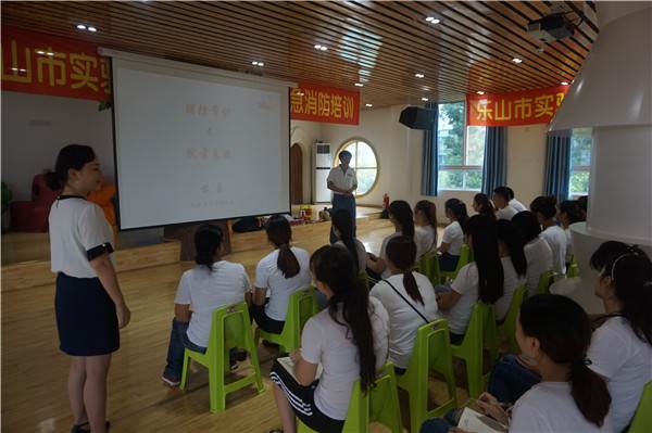 消防安全关系到千家万户,更是幼儿园安全工作的重中之重,为了进一步加强幼儿园安全工作,增强园内教师消防安全意识,2017年9月22日,乐山市实验幼儿园久顺分园邀请乐山市应急中心的榕嘉老师对全园教师进行消防安全、及急救知识培训。