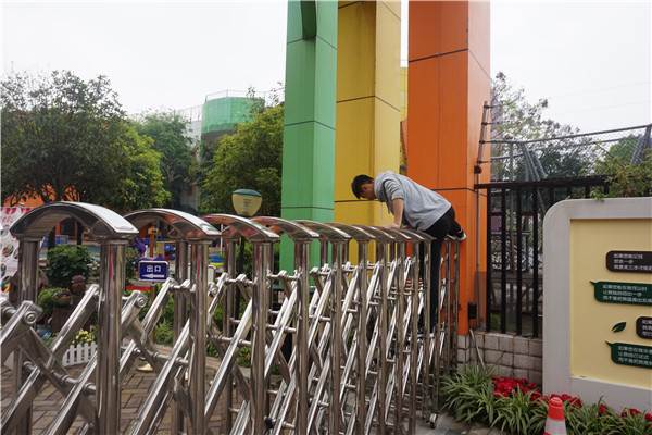 上午十点,一名身材矫健的男子直接从校门外墙角翻越伸缩门进入我园校内,2名保安师傅见状,迅速拿上防暴武器对其进行盘问,另一位保安师傅随即通知学校领导及相关工作人员。