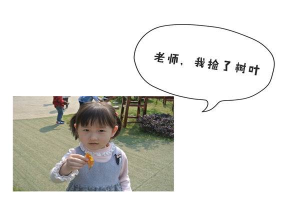 户外活动时间,孩子们尽情的在阳光下奔跑玩耍,大树阴凉处,霜霜弯下腰捡了一片树叶......