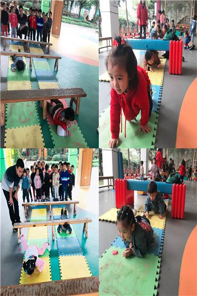 我园以《指南》为依据,根据3——6岁幼儿大肌肉发展的特点制定了符合各年龄段幼儿比赛的项目。我们小班的孩子们的个人项目有:匍匐前进和夹球跳,亲子项目有:抬轿子和运球过河。在幼儿园的每一个地方都有他们练习的身影。走,跟小编一起去看看吧!