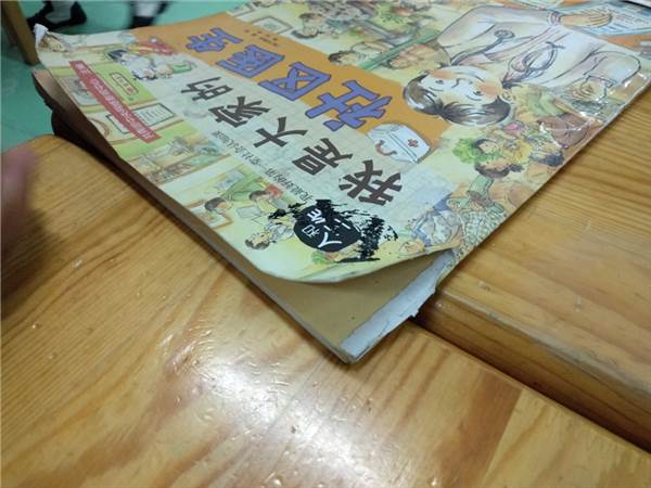 杨杨拿来一本书,指着书角说:“这里坏了,掉了,找不到了。”