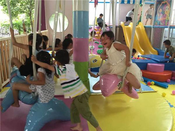 幼儿园又新增了一些游乐设施——快乐淘气堡,孩子们兴奋极了!看,中五班的孩子们,一个个迫不及待脱下鞋子,进到了乐园中,有的孩子在打泰拳,有的在玩滑梯,有的在跳蹦蹦床,有的在玩海洋球……欢笑声充斥着整个美丽的校园,连老师们也童心大发,加入了孩子们的游戏中。