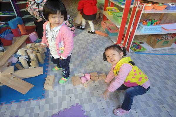 你瞧!他们有修建大门的、有修建“卧室”的,还有的小朋友为卧室铺上地板,摆上小床和枕头。紧接着他们甚至还在原有搭建结构的基础上进行完善,不仅为动物朋友们搭建爱心电梯公寓,还有户外设施,如:滑滑梯、跷跷板、独木桥等等。