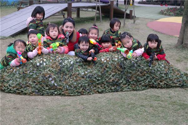 穿着迷彩服,举着手枪瞄准前方……这不是在军营,而是市实验幼儿园小朋友们的CS野战游戏。