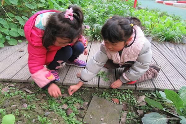 “我们的菜地里有好多的杂草啊!我们今天要全部除干净!”小朋友们兴致勃勃的开启了除草计划。孩子们不仅专心的投入在除草活动中,也开始观察这些杂草,他们发现杂草都是小小的,贴在地下长的。还有些孩子给杂草们取了名字。有个杂草的叶子像桃心,孩子们叫它“桃心草”;有个杂草是长叶子,孩子们叫它“叶子草”等等。通过全班小朋友的努力,不到半个小时我们菜地里的杂草差不多都除干净了,孩子们看到自己辛勤的劳动成果,擦着额头上的汗水高兴地对我说“老师,我们的蔬菜会很快长大的!”