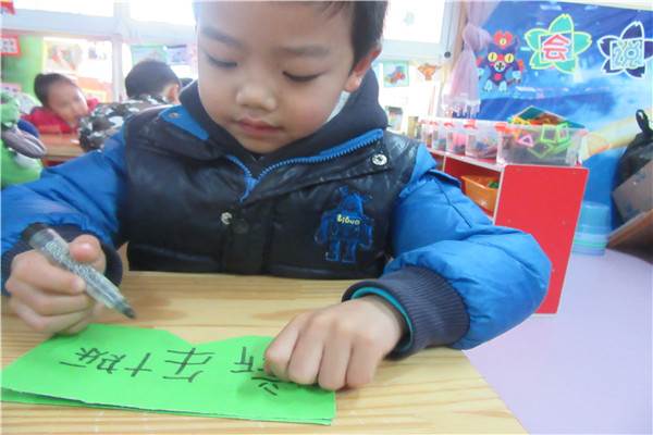 孩子们在认真的制作新年贺卡。