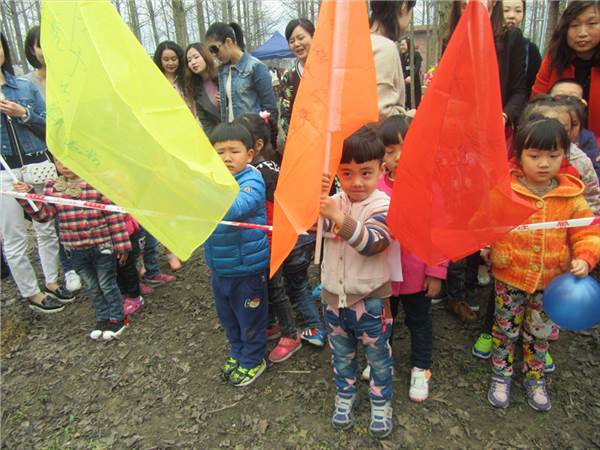春意贸然,中八班的孩子们带着爸爸妈妈来到相约好的银杏林集合,我们要在这儿进行探险和野炊的哟!