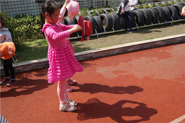 瞧,太阳出来了,大三班的孩子们已经迫不及待的带上影子先生去和太阳打招呼了呢!我的影子会戴帽子,你的影子会戴帽子吗?