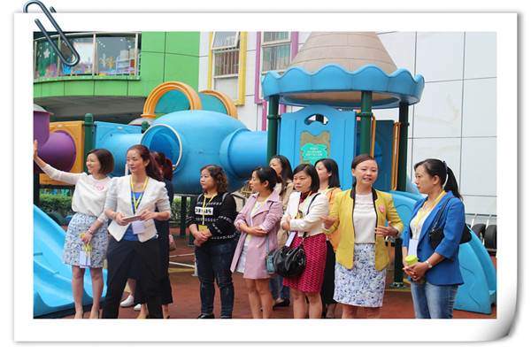 在参观交流中,首先由文园长向大家介绍了幼儿园的特色和办学模式,并且围绕幼儿园的办园理念和思路、教师队伍建设、园所环境、班级环境打造等方面进行了交流。之后在文园长和蔡园长的陪同下,来访者们参观了我园的校园环境,综合游戏功能活动区域,以及各班教室的环境布置。美观温馨的教室环境、极具创新的区域设置、丰富野趣的户外游戏,给前来参观的老师留下了深刻的印象,在参观中,大家不断交流讨论着,并用相机拍摄下幼儿园每一处引人注目甚至细微的环境。参观的老师说,她们从幼儿园的环境中看到了老师巧妙的心思,感受到从每个细节中透露出的浓厚的教育特色及以幼儿为本的理念。