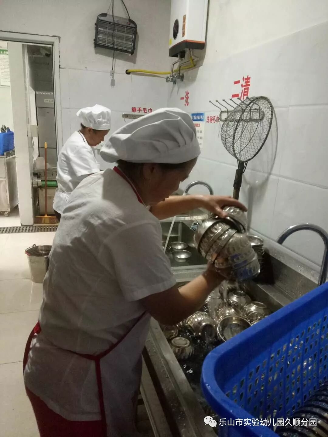 我园还聘请专业人员对幼儿园的所有饮水设施进行了消毒清洗和保养,对过滤型饮水设备进行了彻底清洗和消毒,幼儿园厨房对所有的碗勺水杯饭锅等用品进行清洗消毒。