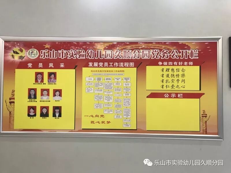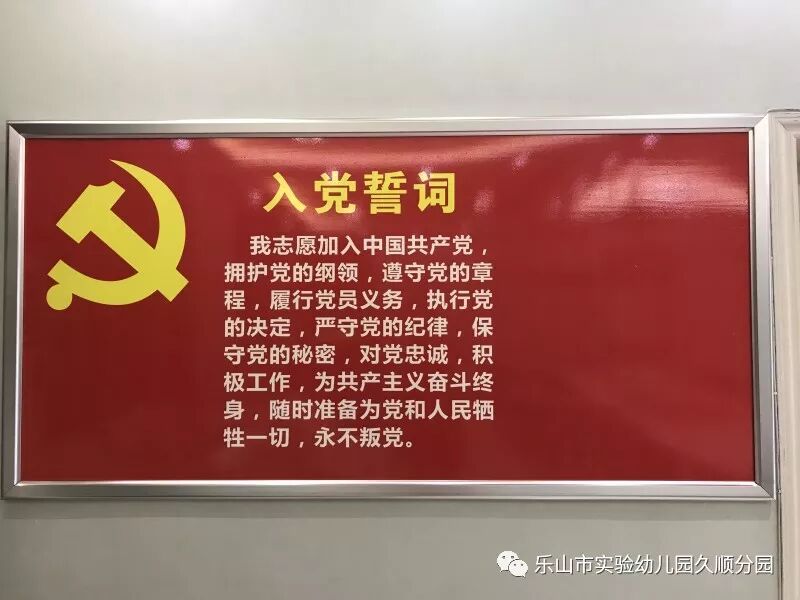乐山市实验幼儿园久顺分园党支部,严格落实从严治党要求,高度重视党建工作。为推动党建工作有序开展,进一步提升党建工作水平,把加强党员活动阵地建设作为党组织建设的一项重要载体来抓,创建了标准化党员活动室。