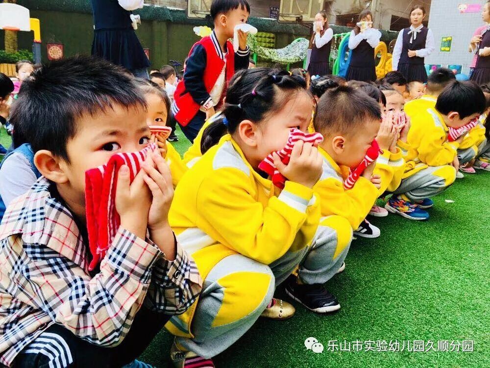 乐山市实验幼儿园久顺分园校园内,一阵警报声响起,随后“火灾袭来”,正在活动的所有孩子们在老师的指导下迅速安全的逃出教室。
