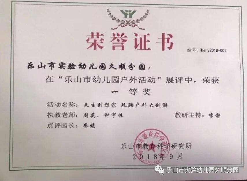 热烈祝贺我园在乐山市户外活动展评中喜获一等奖