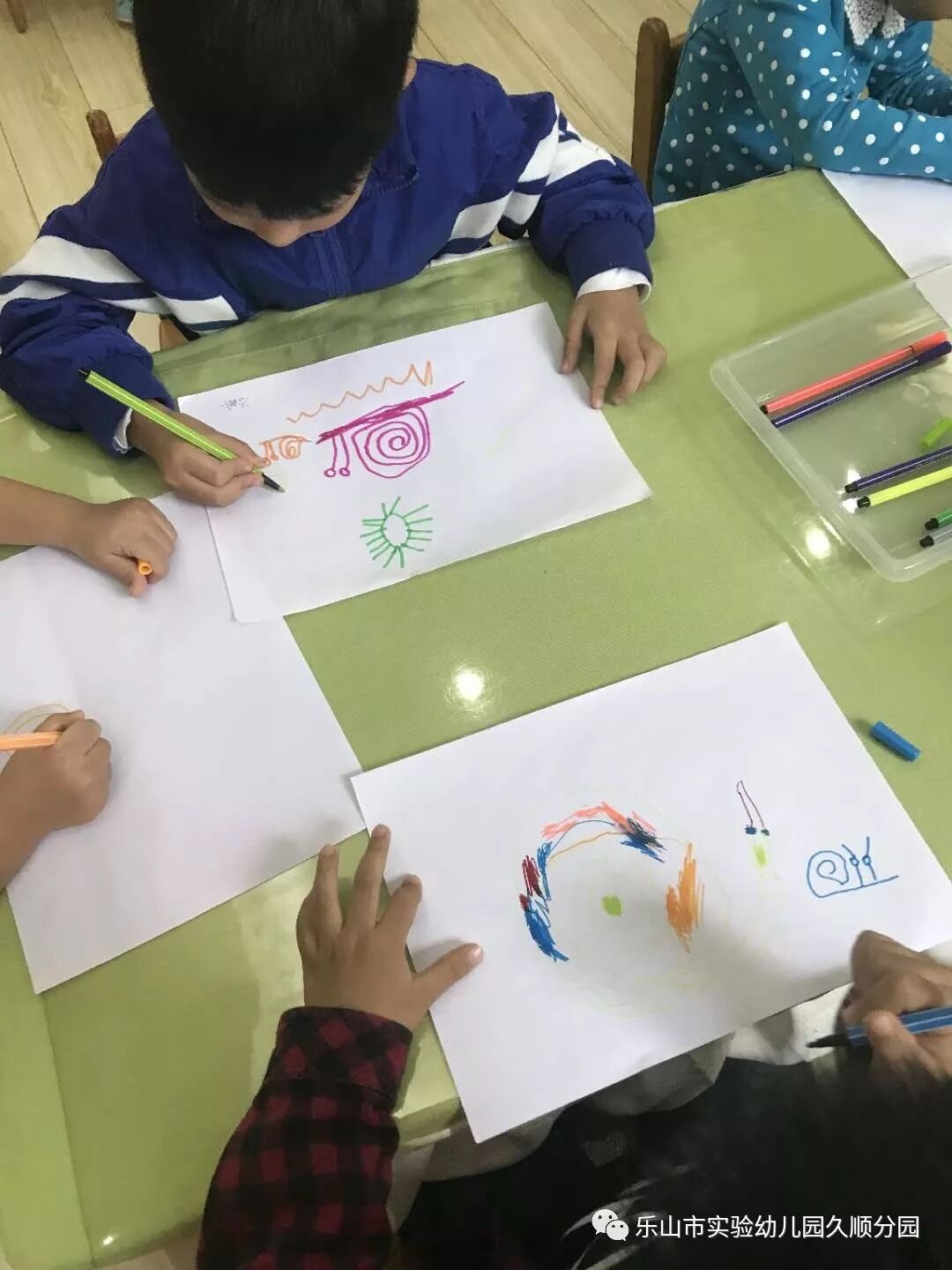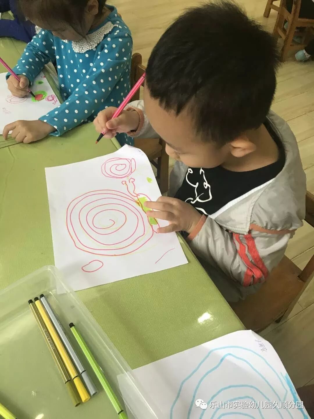 妹妹:“我们一起给蜗牛宝宝画张像,看见它就像看见小鸡蛋它们了。”