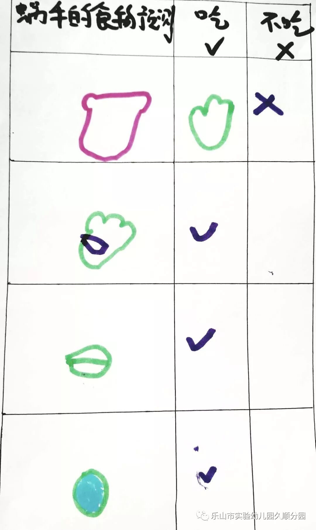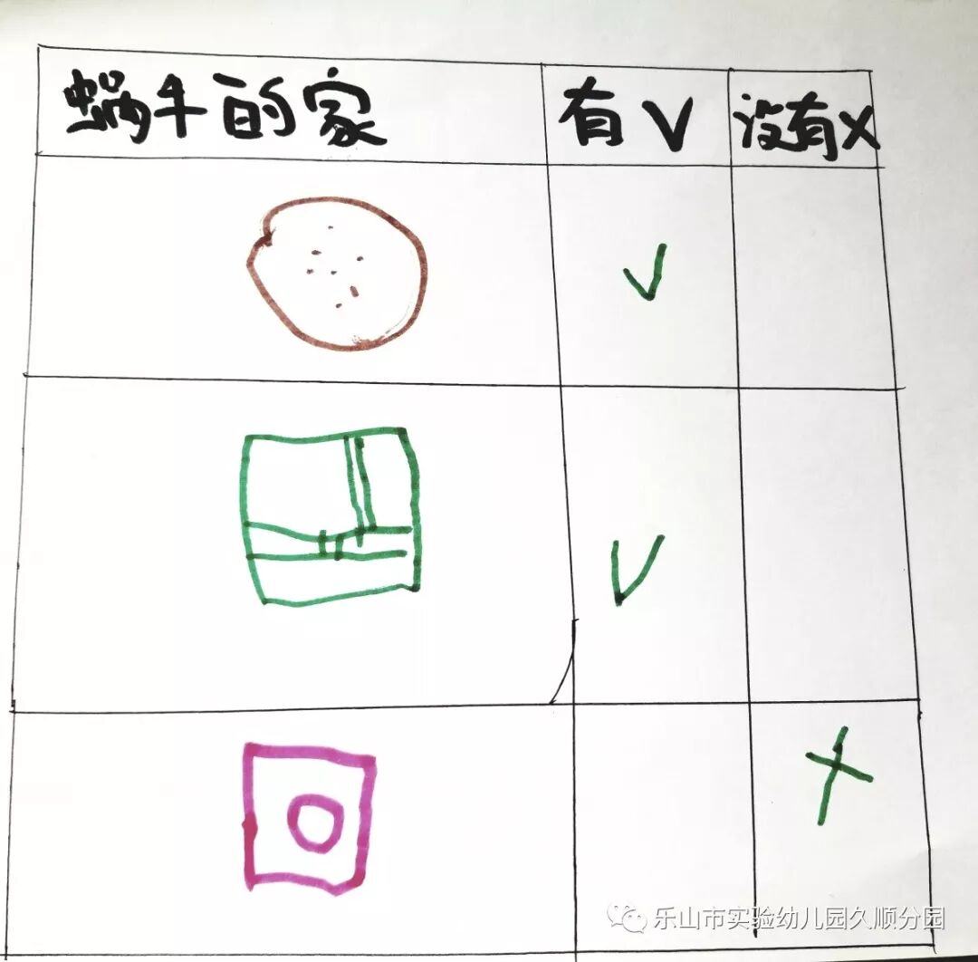 孩子们把找到蜗牛的地方用他们的方式进行了记录。