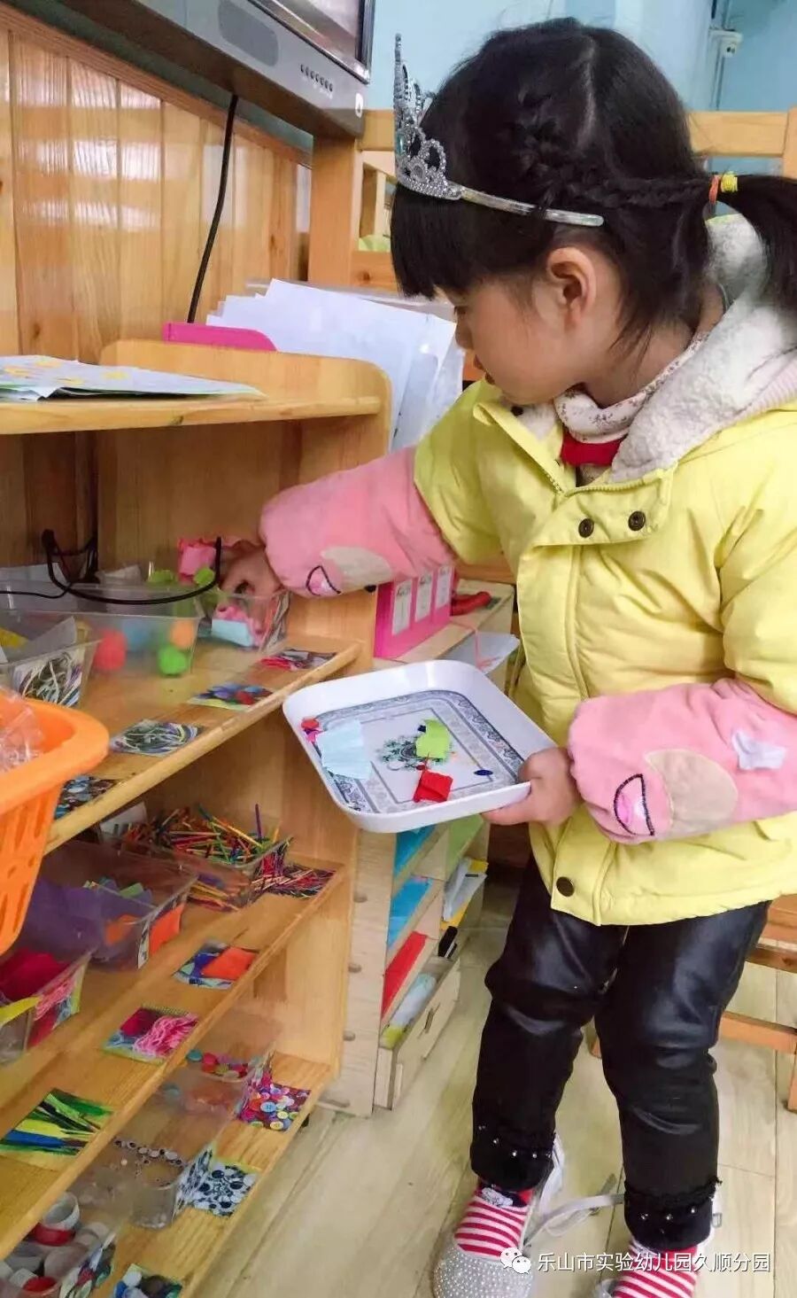区域活动时间,艺术区,翕妹说:我要去家庭区里先去打扮成公主以后,在去艺术区做一个苹果树,我需要剪刀、彩纸、水彩笔、盘子。你在工作的40分钟的时间里,一直在完成着你的计划。