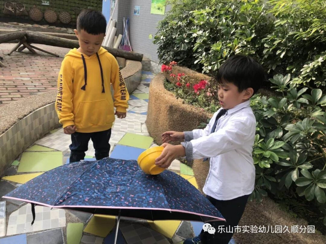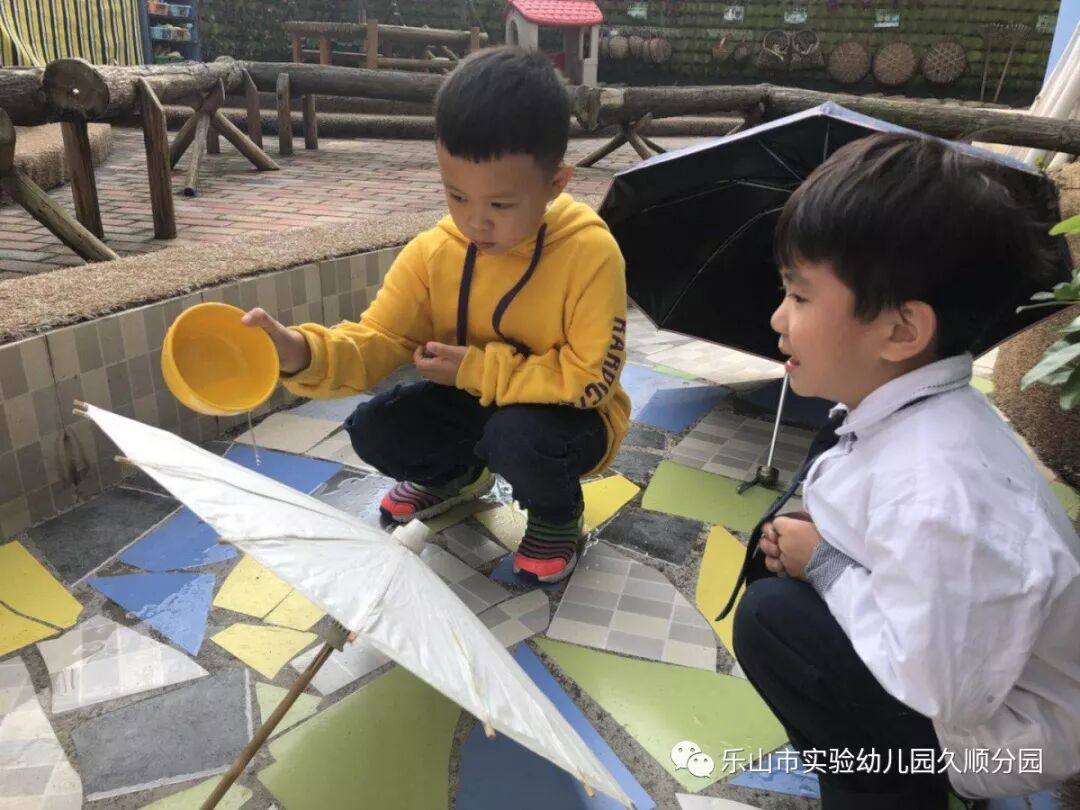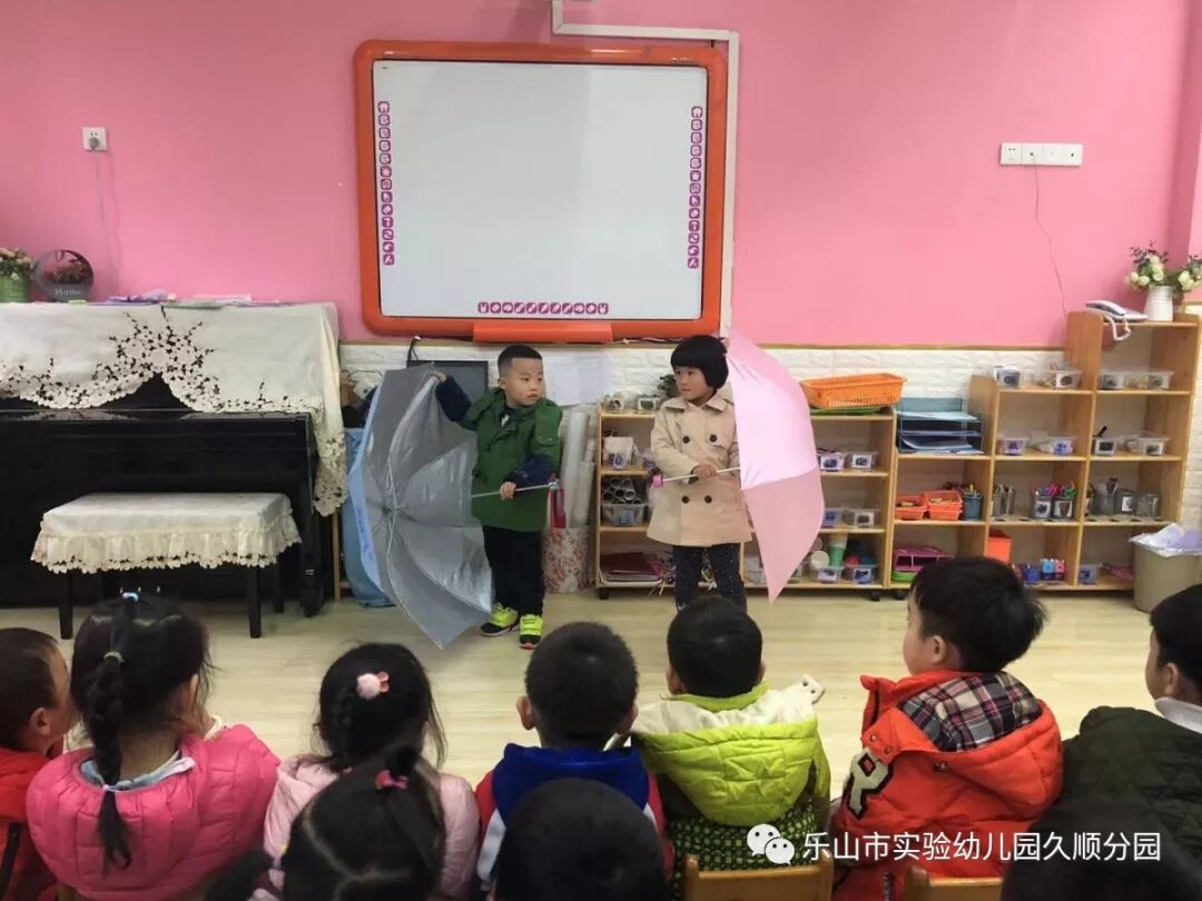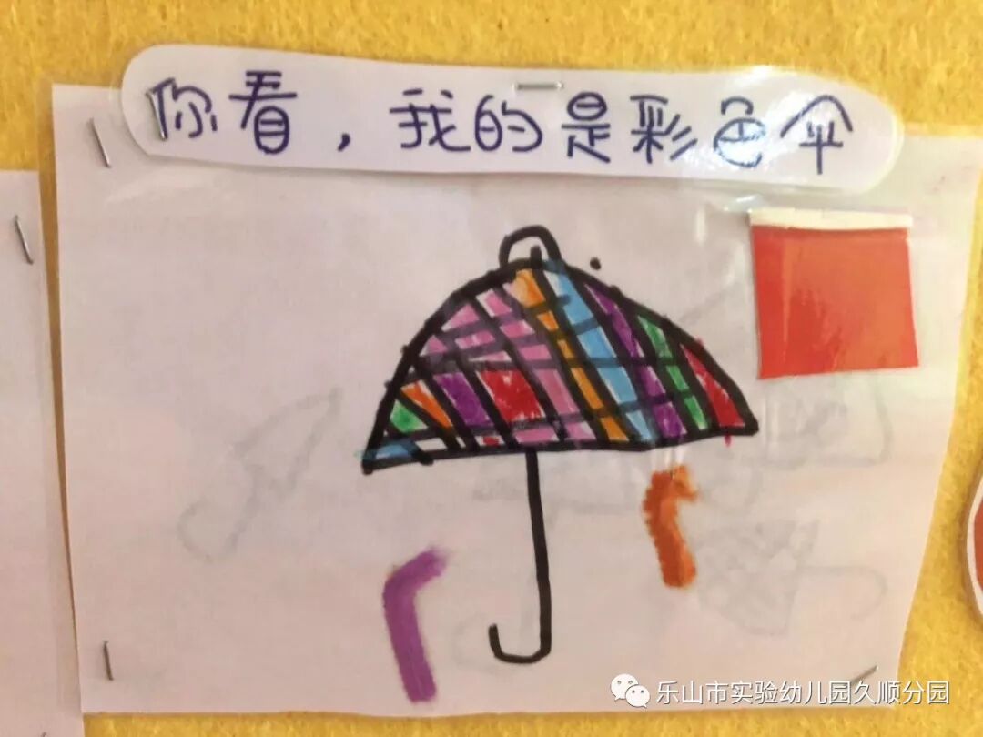 最近正值雨季,经常早上都有小朋友打伞来到学校。有一天,突然一位小朋友看着大家的伞说:“你看我们的伞都不一样,我的是短的,你的是长的,她的是有花纹的……”因为小朋友们的兴趣,于是我们开始了这个主动学习课程——伞的世界。