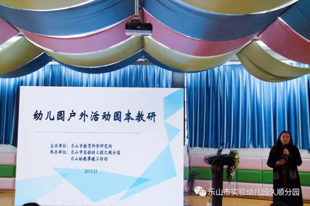 12月5—7日,我园成功举办乐山市“幼儿园户外活动园本教研”专题研讨会。市教科所幼教教研员宋晓萍和全市各区市县及直属幼儿园的幼教教研员、园长和一线骨干教师等共计450余人共聚一堂,开启一场户外活动园本教研之旅。