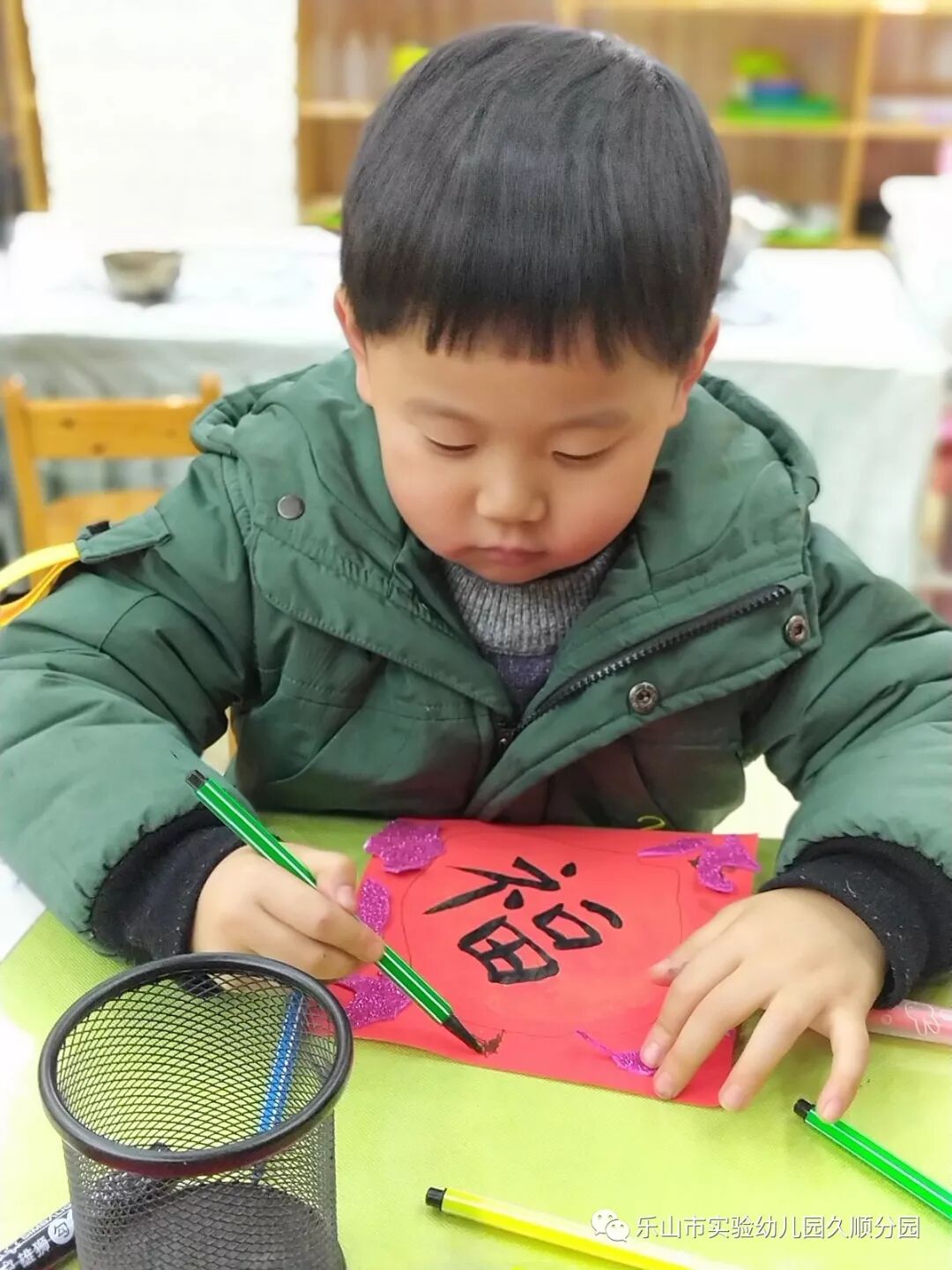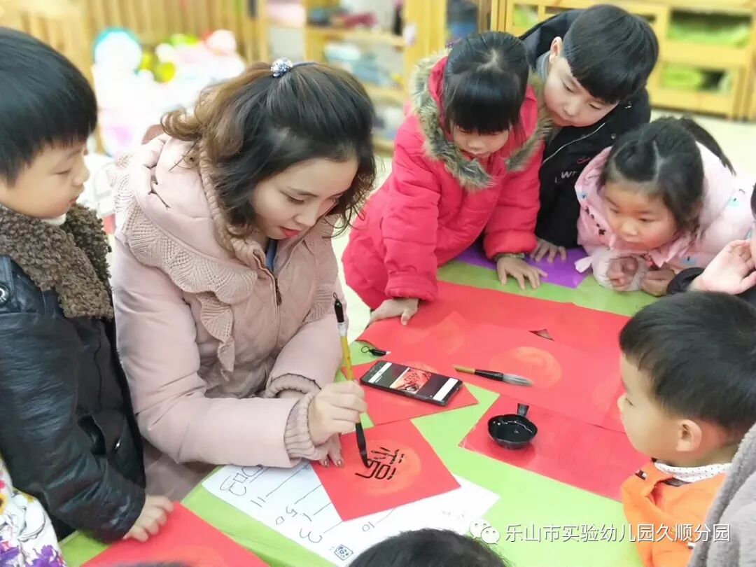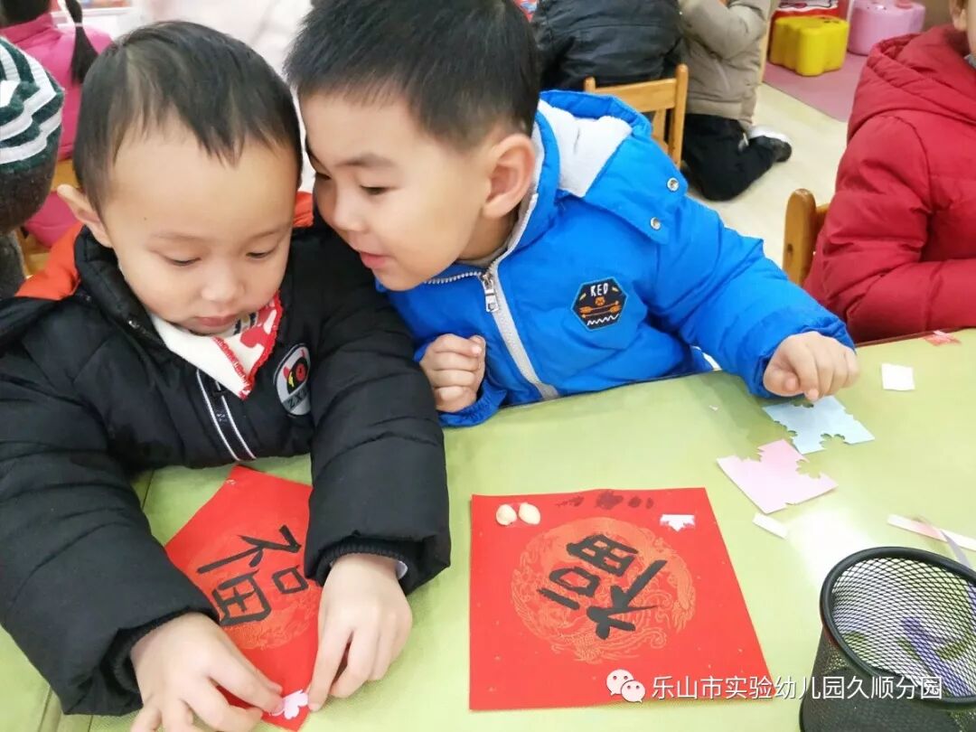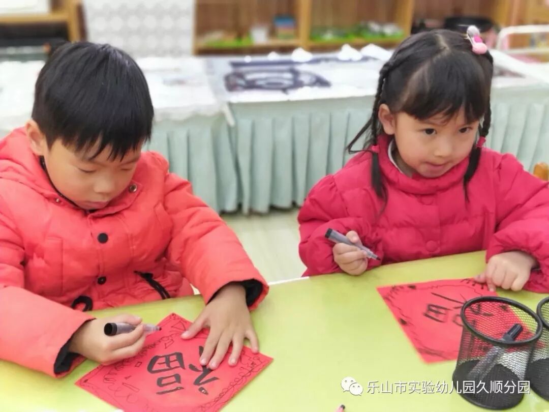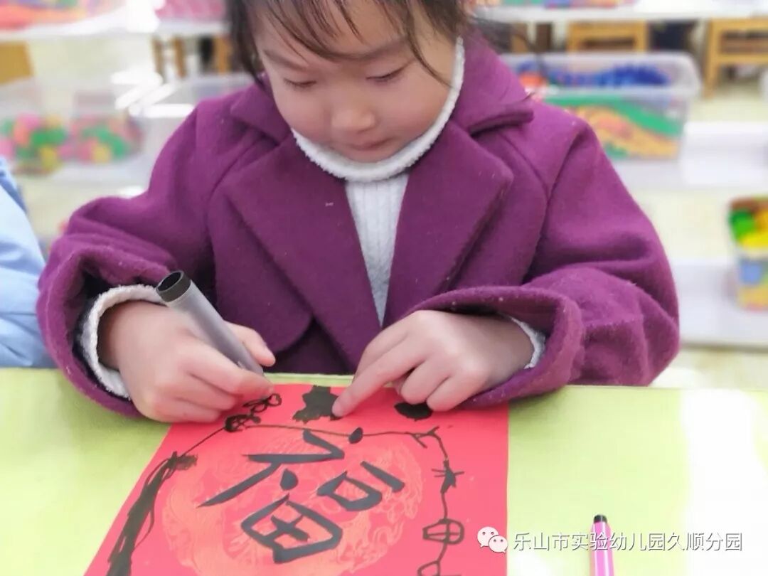 几位妈妈老师的字写得真漂亮呢!孩子们也想要动脑动手起来啦!写好的福卡,就交给我们小小设计师来设计装饰福卡吧!福卡工作室的小小设计师你们大显身手的时候到咯。