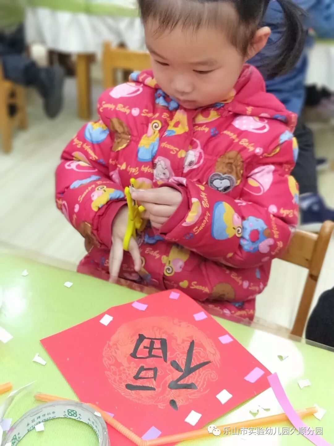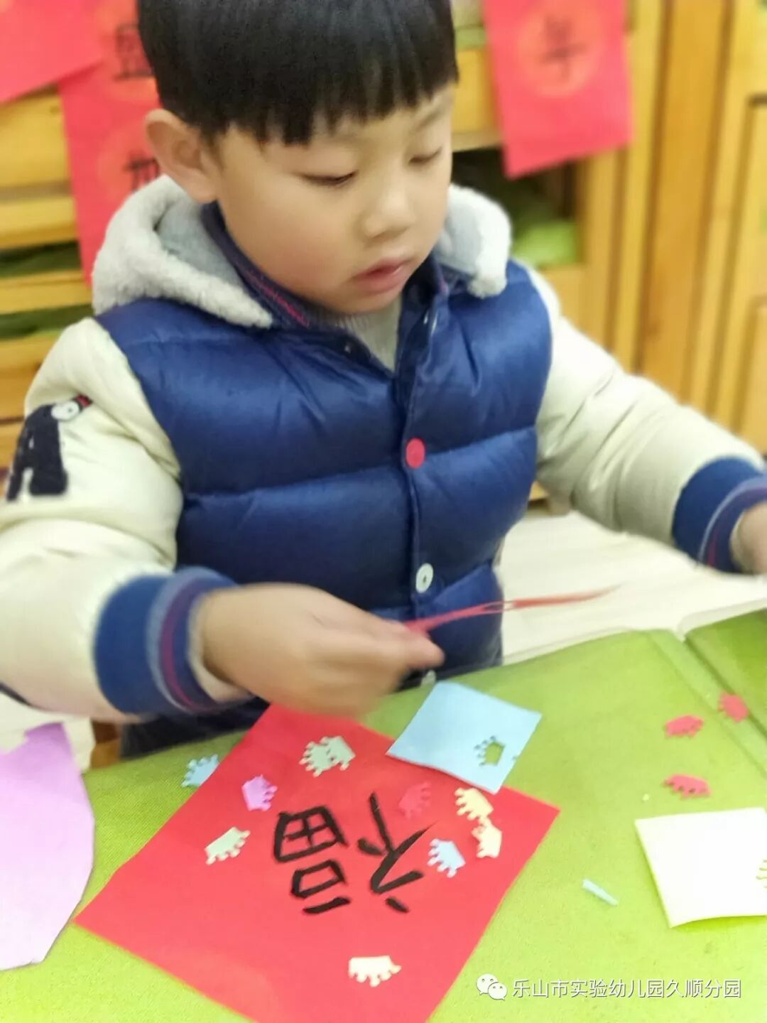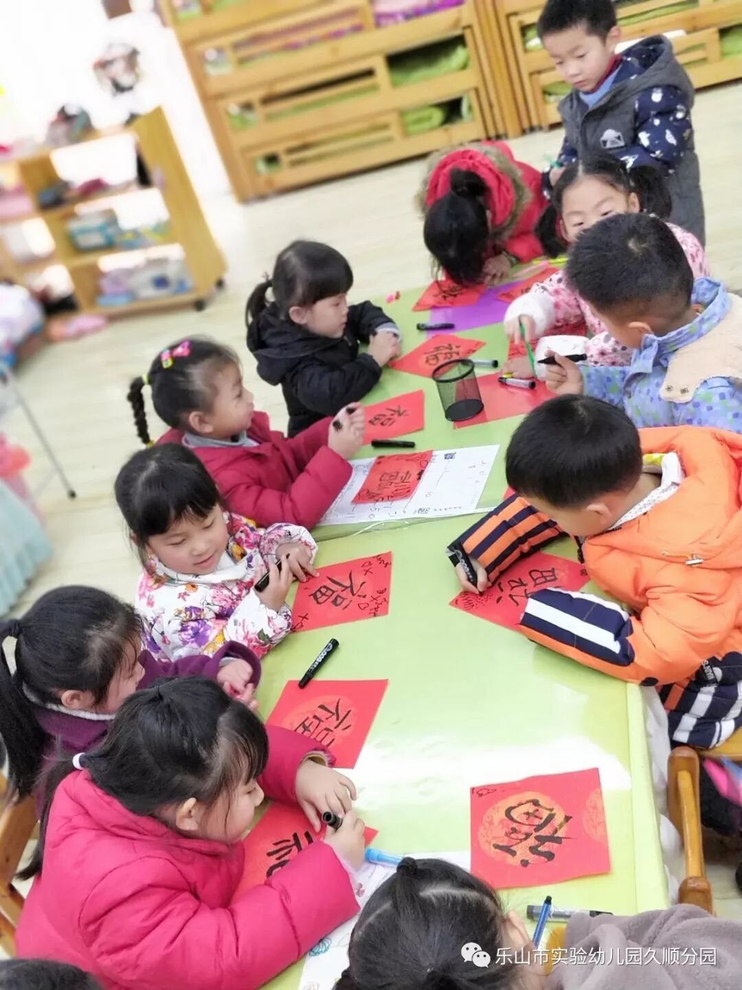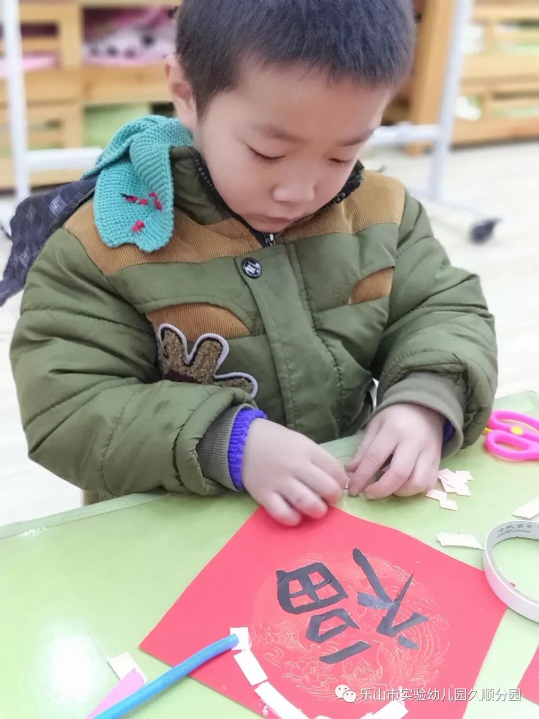 几位妈妈老师的字写得真漂亮呢!孩子们也想要动脑动手起来啦!写好的福卡,就交给我们小小设计师来设计装饰福卡吧!福卡工作室的小小设计师你们大显身手的时候到咯。
