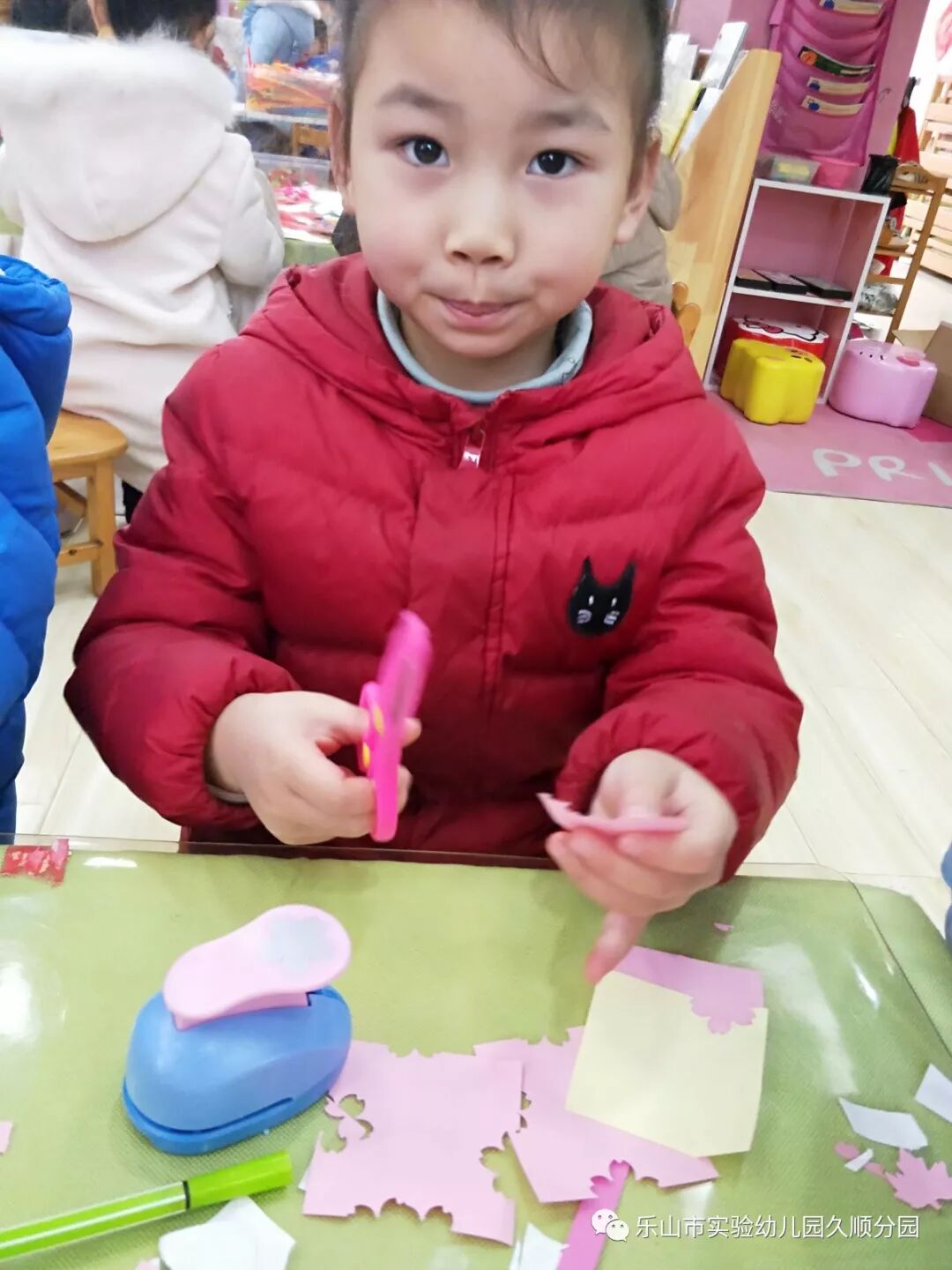 孩子们自由选择自己想要的材料,进行福卡装饰。剪,贴,撕,画,抠,扯各种操作,动手又动脑。毛球,吸管,彩笔,果壳等等材料齐齐上阵。工作室的氛围真的好不热闹,大家都在认认真真的创作自己的作品,走心的设计到时候能否得到其他小朋友的青睐前来购买呢?让我们拭目以待吧!