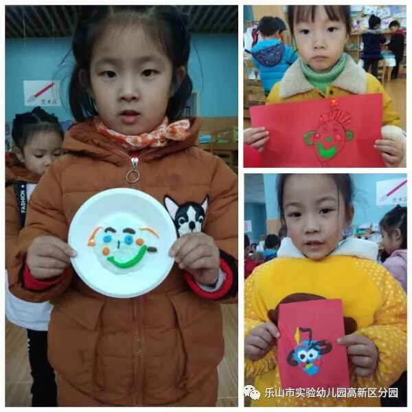 //我们还能做出美妙的脸//“ 孩子们自由选择材料,运用画、揉、捏、贴、切等方法认真进行创作,在自由创想的同时促进了自身小肌肉动作的发展。”