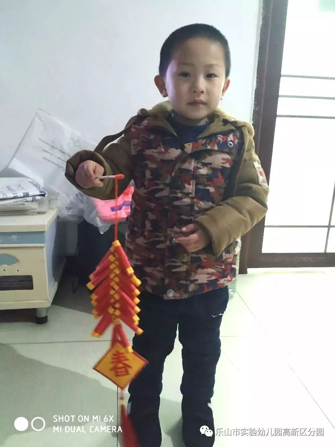 教室里高挂的红灯笼、鞭炮串、对联、窗花……