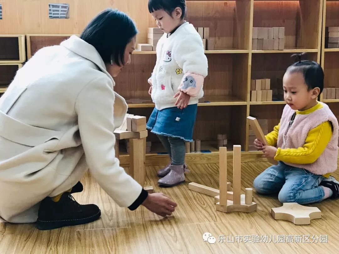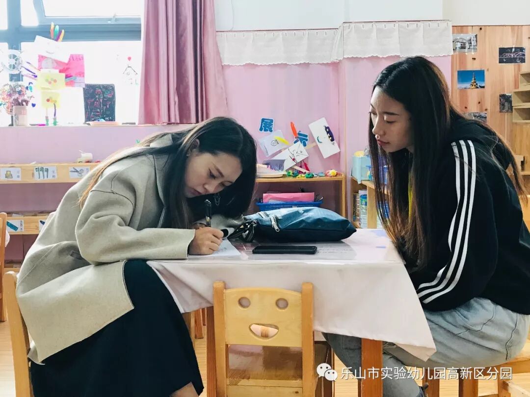 我园采用理论学习为先,示范引领随后、跟岗实操深入的模式,在这六天中,老师们进班跟岗,了解一日生活环节;观察解读孩子游戏行为;观摩优质课;静听园本课程讲座;参与常态化教研活动……跟岗老师们在学习互动中交流,在观摩聆听后反思,在分享体验中成长,时光因求索而熠熠生辉。与孩子们互动————善于思考、勤于学习的你————