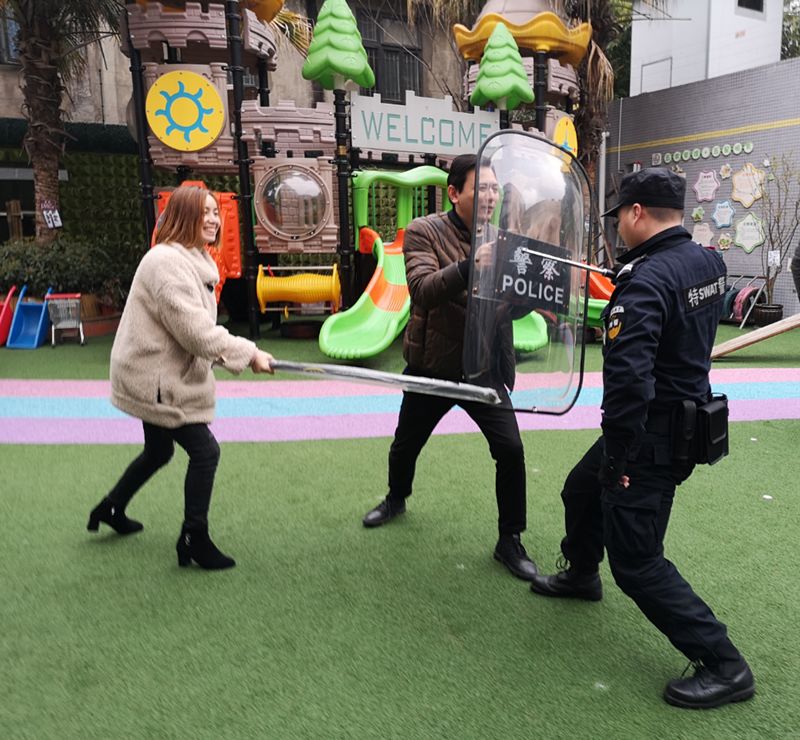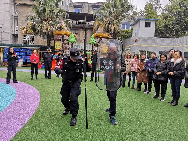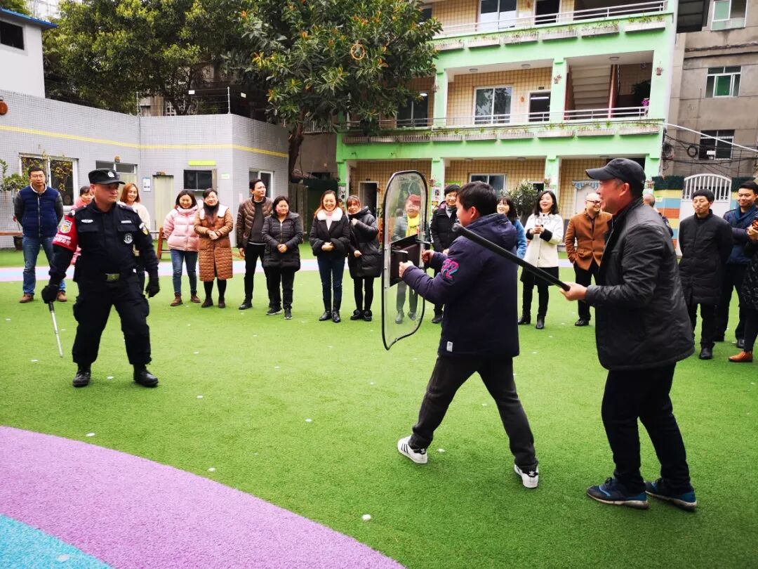 3月7日下午,乐山市公安局市中区公安分局彭山路派出所副所长董宇文及牛儿桥社区民警万英带领分局巡逻大队特警六人组为我园20多位家长和保安师傅开展“护卫队”上岗前的突发事件应急培训。