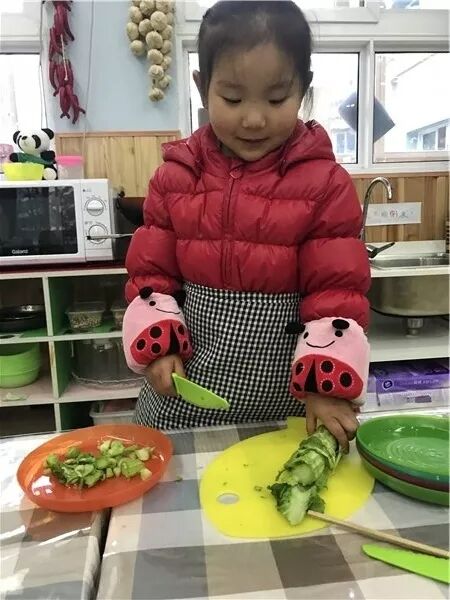 看我们多能干,把菜切好咯!