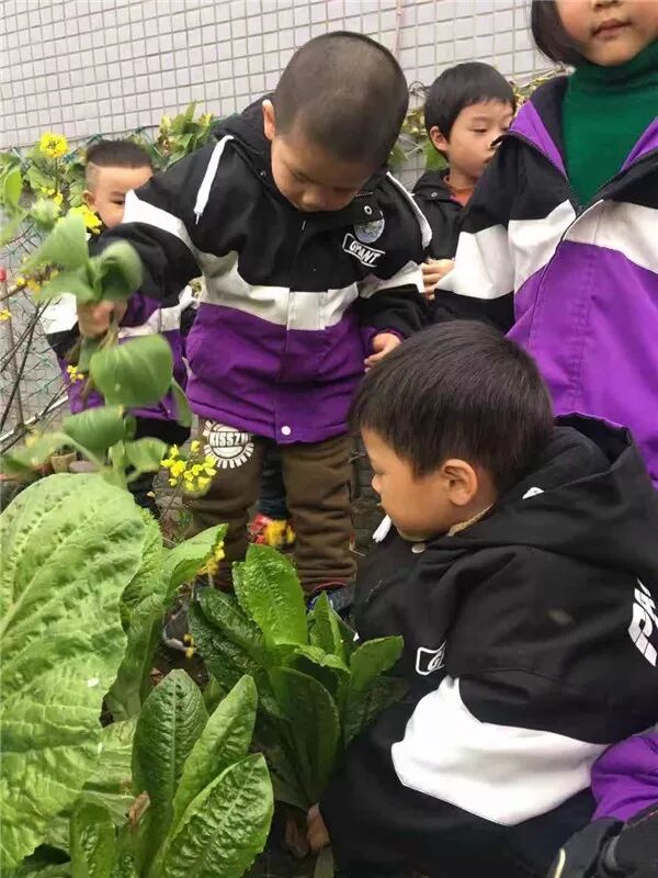 老师们就跟着孩子们一起来到菜地。