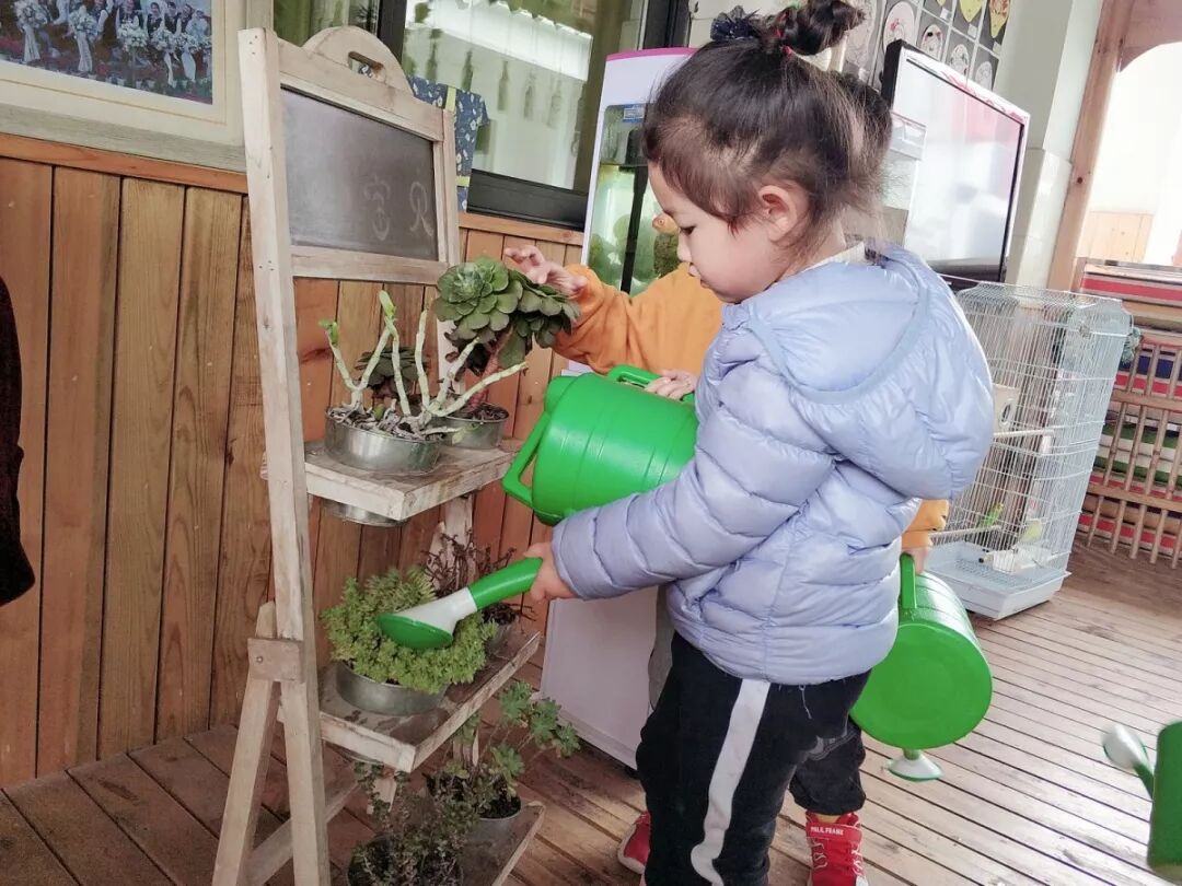 通过对植物的照料,孩子们的观察能力、责任心都可以有所提升,生活素养也可以得到很好的锻炼。当一盆小小绿植的生命掌握在他手上的时候,这种责任感在孩子心里油然而生。
