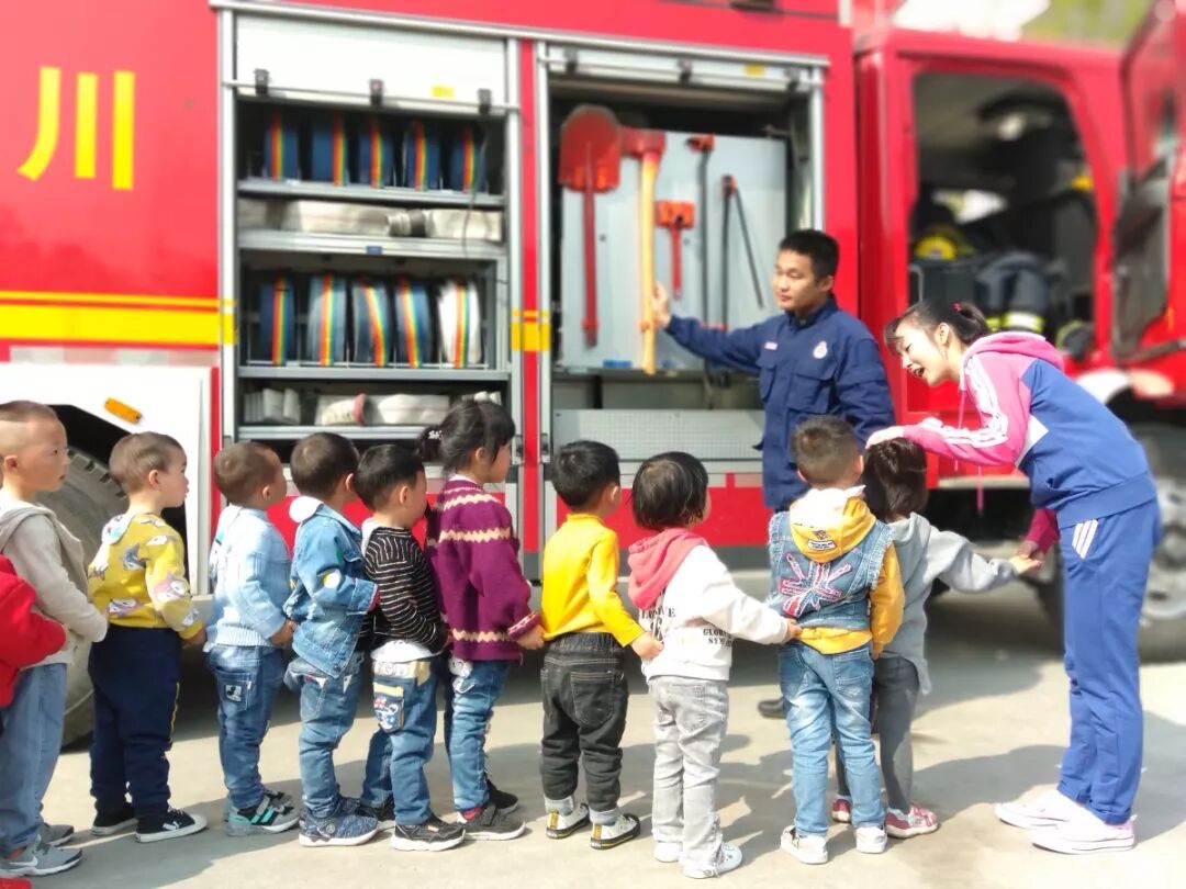 随后,消防员叔叔带领小朋友们参观了消防车,让孩子们了解消防车的构造及常用消防工具的用途和使用方法。