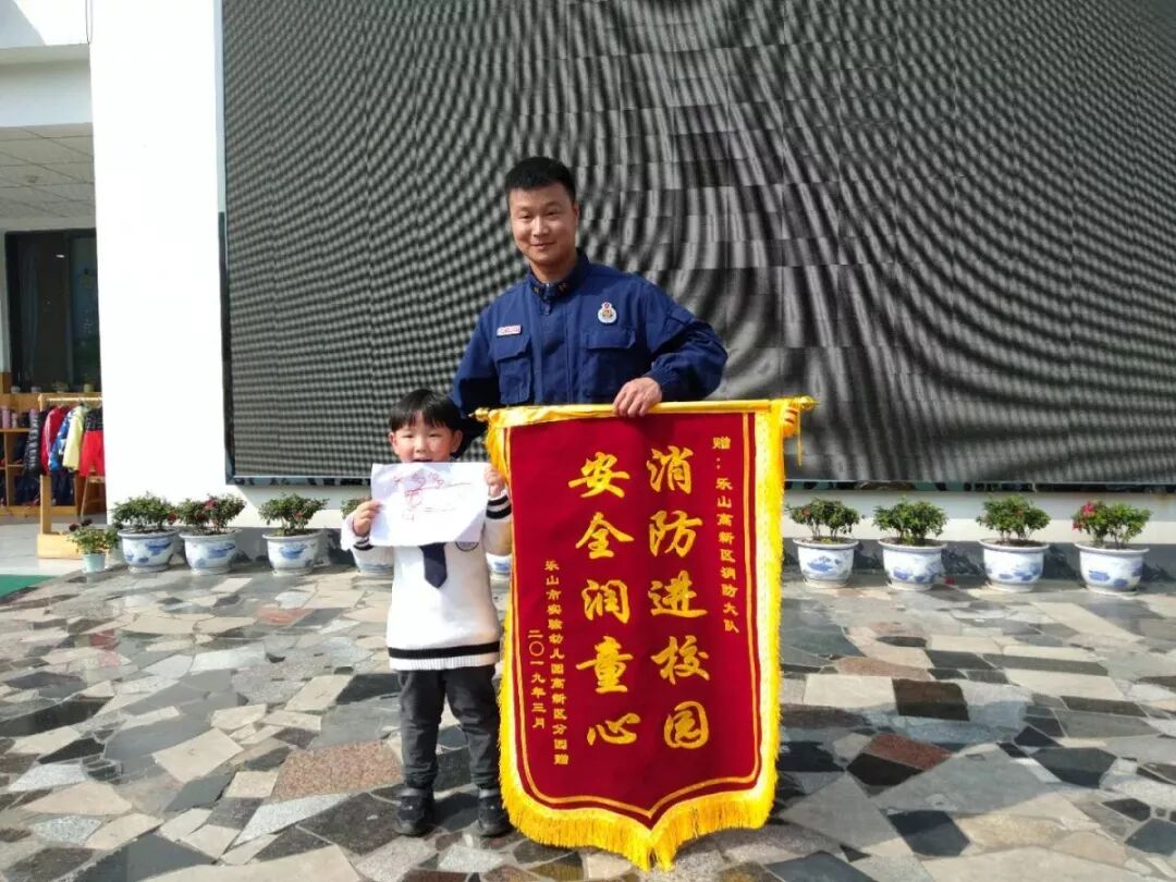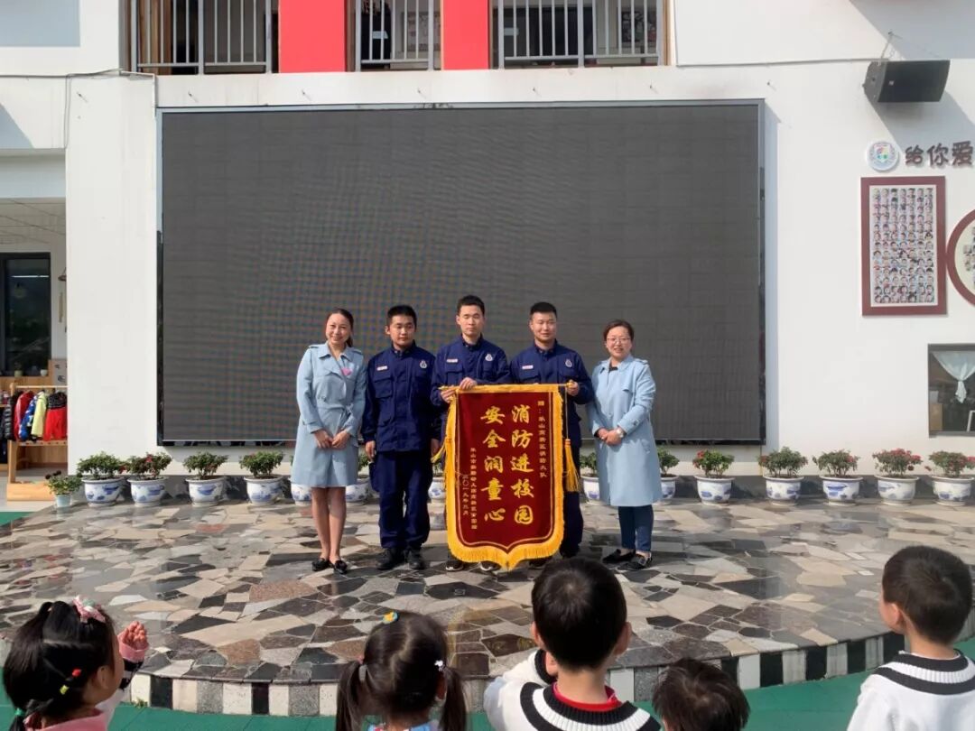 朱园长和乐老师为我们消防员送上锦旗,小朋友也为消防员叔叔送了自己亲手画的画,感谢他们在危险发生时勇敢的冲进火场救人,他们是我们的大英雄!