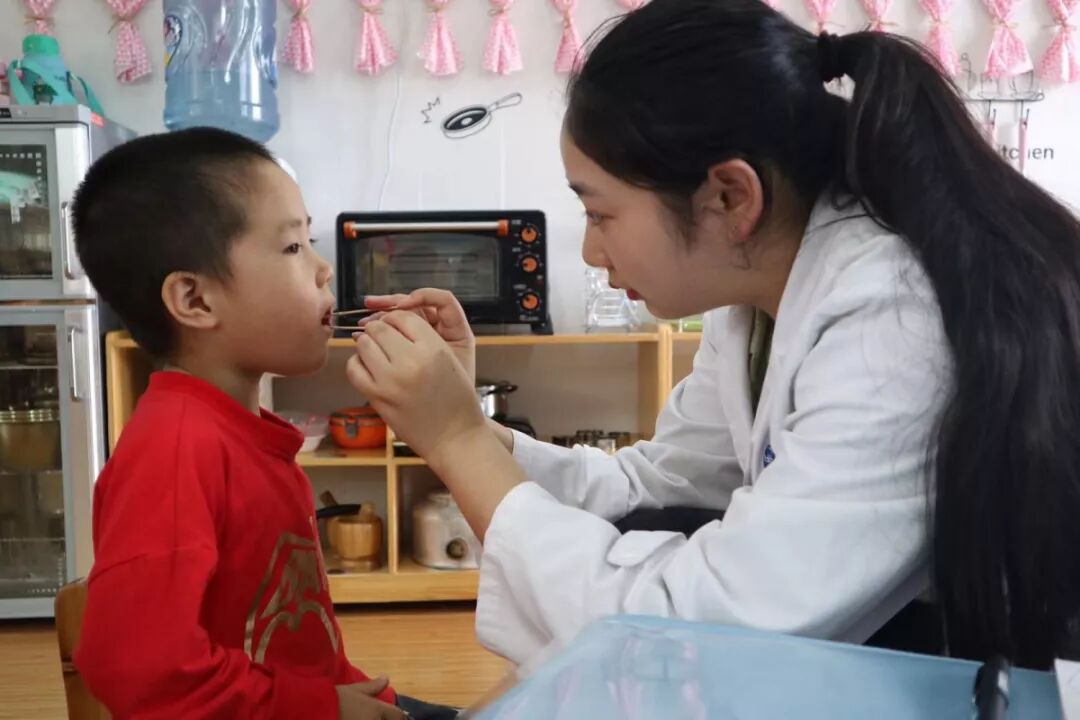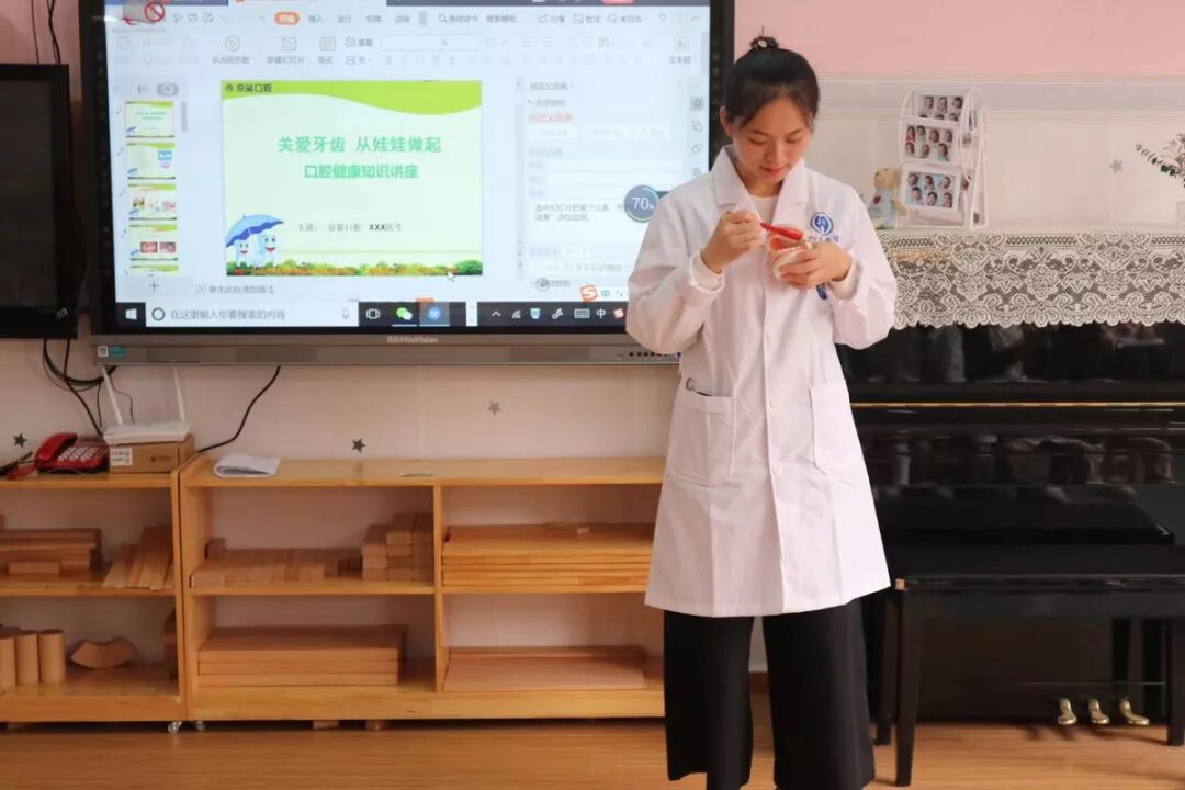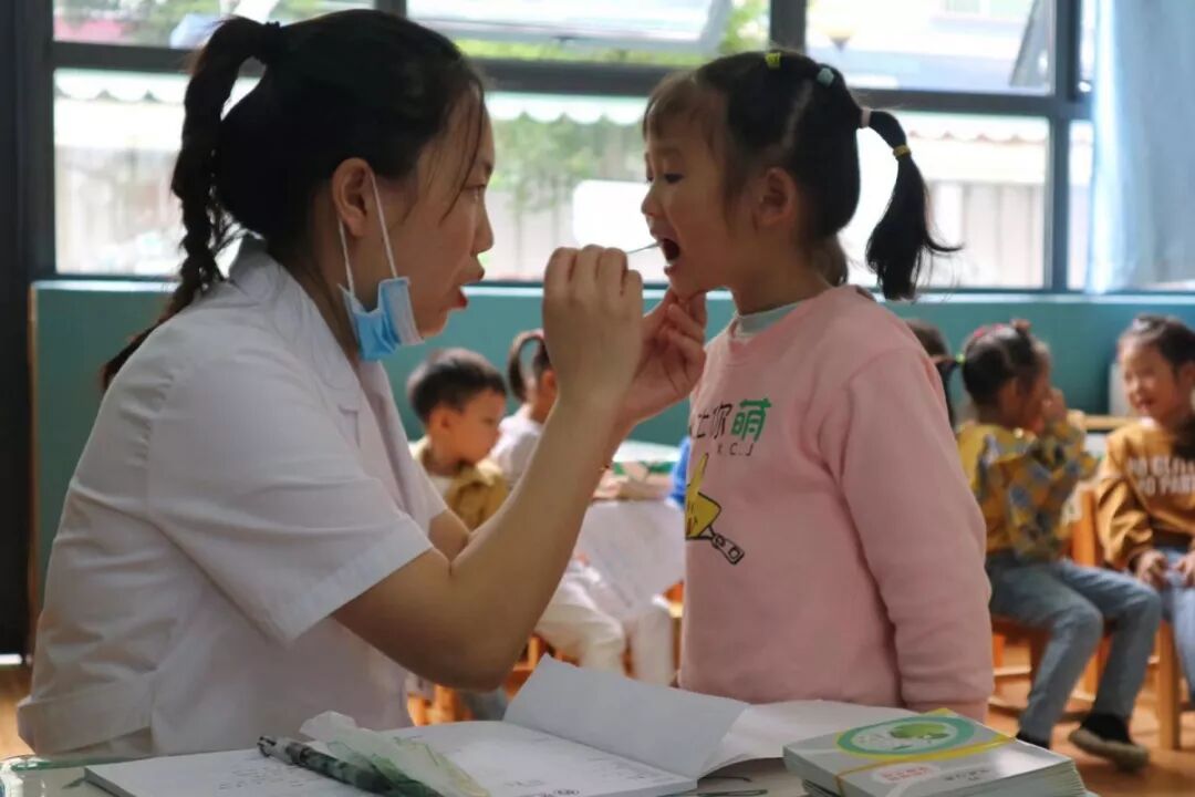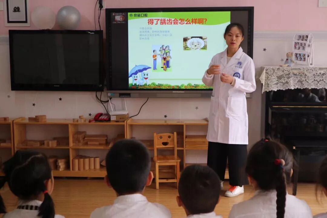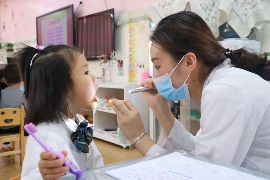 今天,专业牙医来到幼儿园为孩子们讲解爱牙小知识并检查牙齿。
