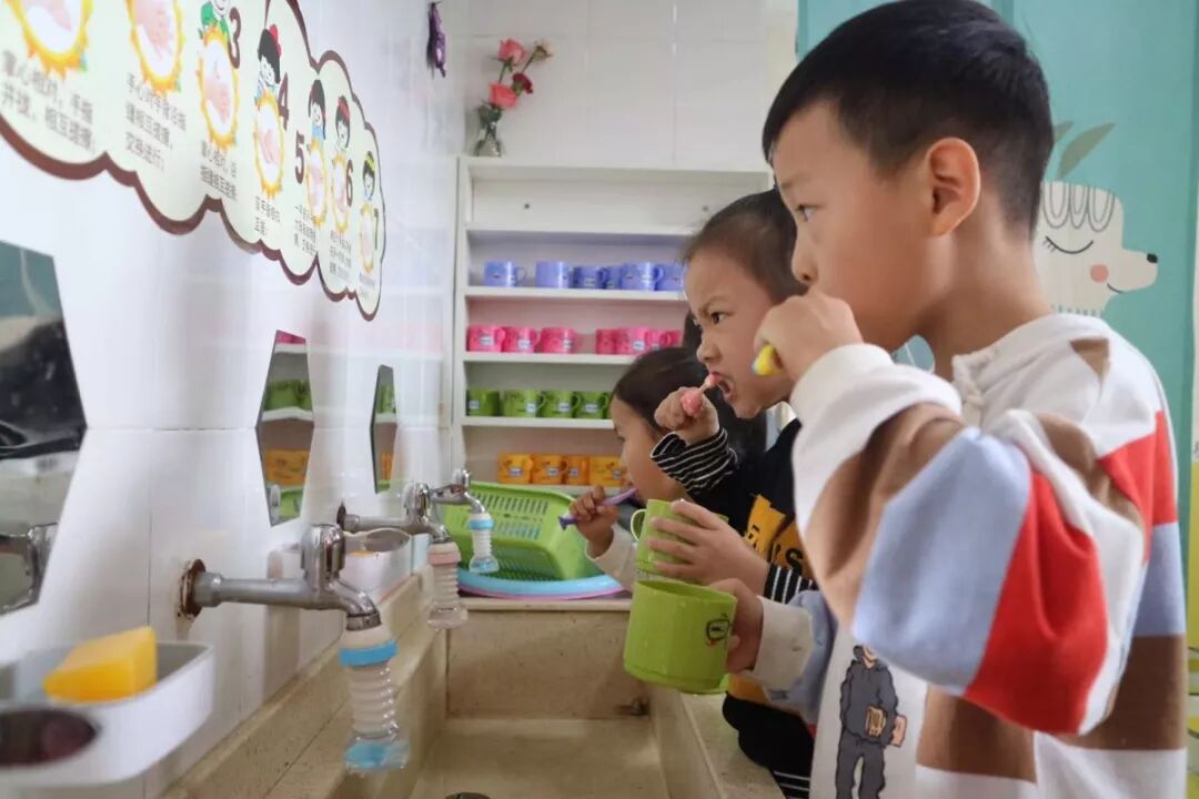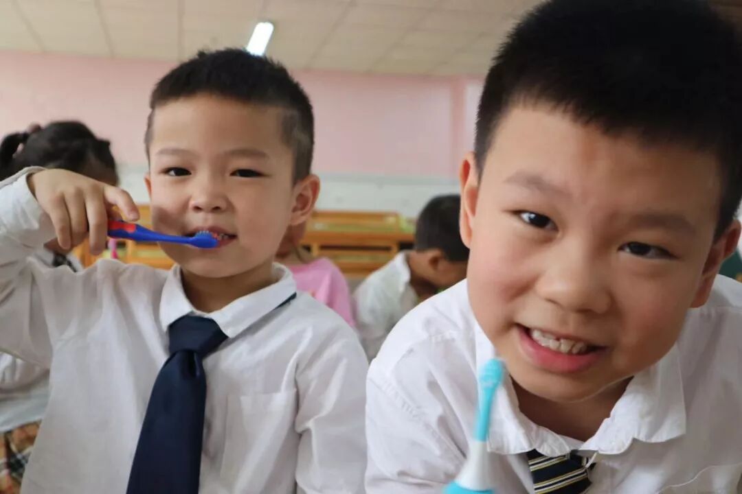 代靖宇:我先刷中间的牙齿,再刷大牙。