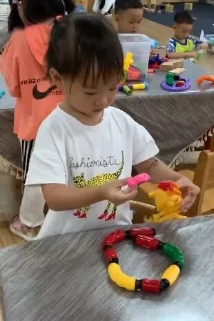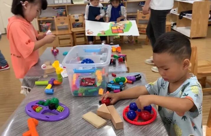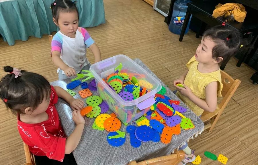 区域活动中,孩子们自主、自由地挑选自己喜欢的游戏,尽情地发挥着自己的才能,进行探索、创造,在这个过程中他们或分享、或合作、或谈笑风生……