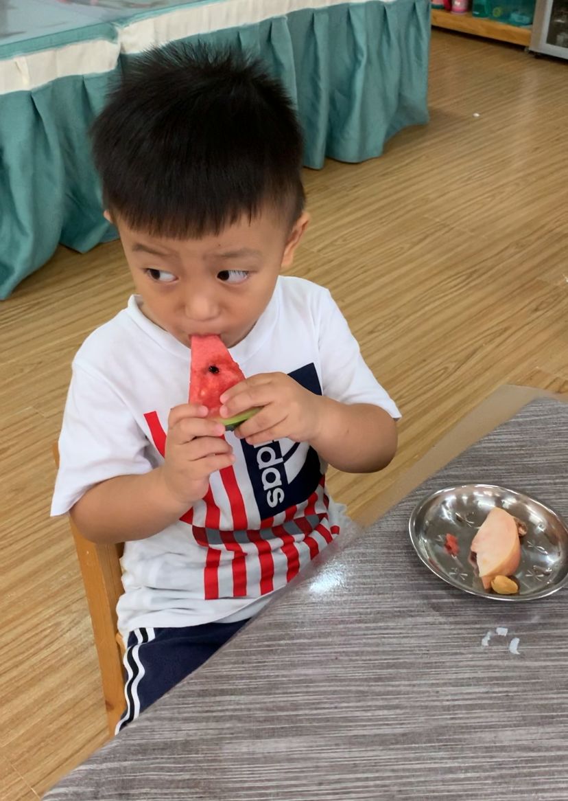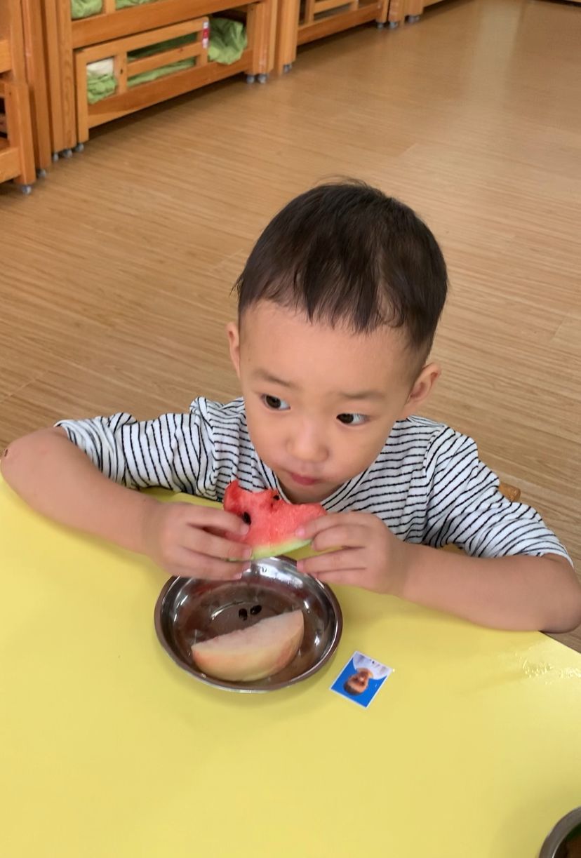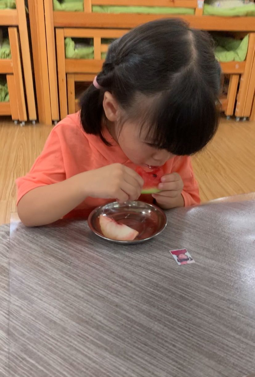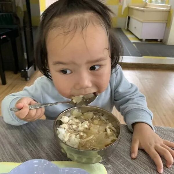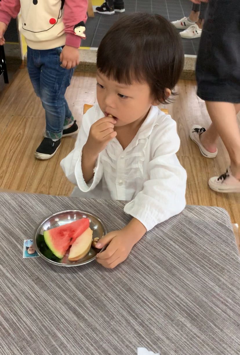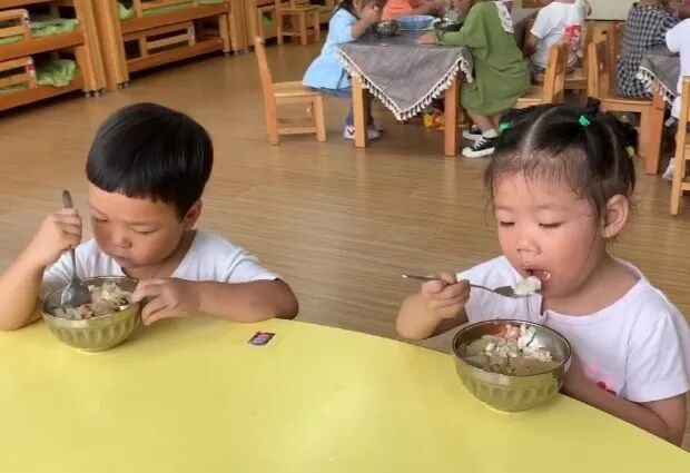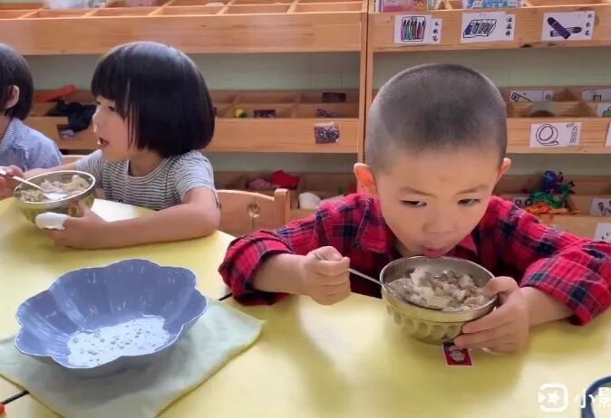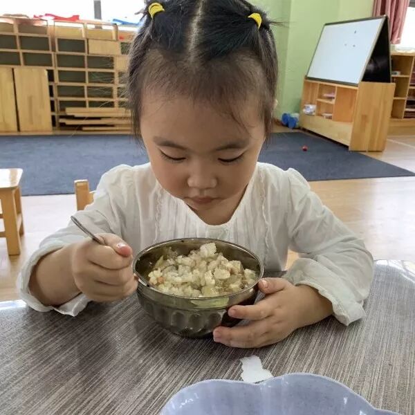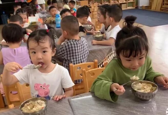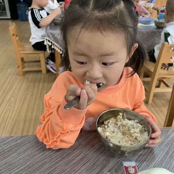 玩累的宝宝们开始大口大口的品尝着美味营养的午餐,吧唧吧唧.看的小编都饿了呢!
