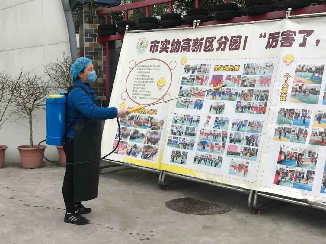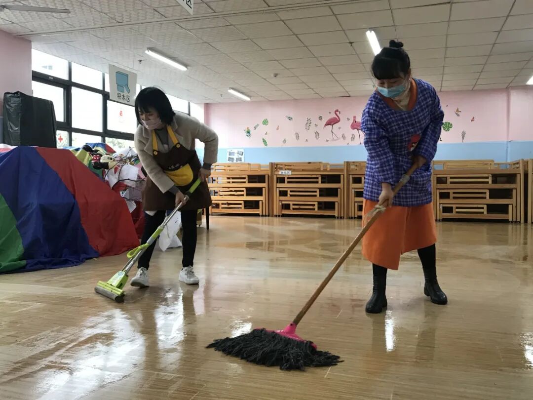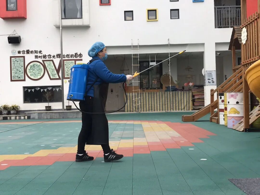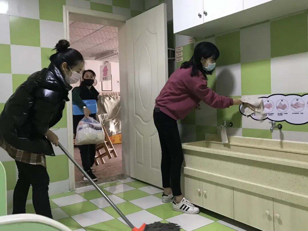 我园组织教职工员对全园所有室内场所、户外场地进行了全面清洁消毒,通过环境卫生整治、清除卫生死角、室内户外大扫除三方面对幼儿园全部场所进行清理、检查,坚决打赢新冠肺炎防控战。