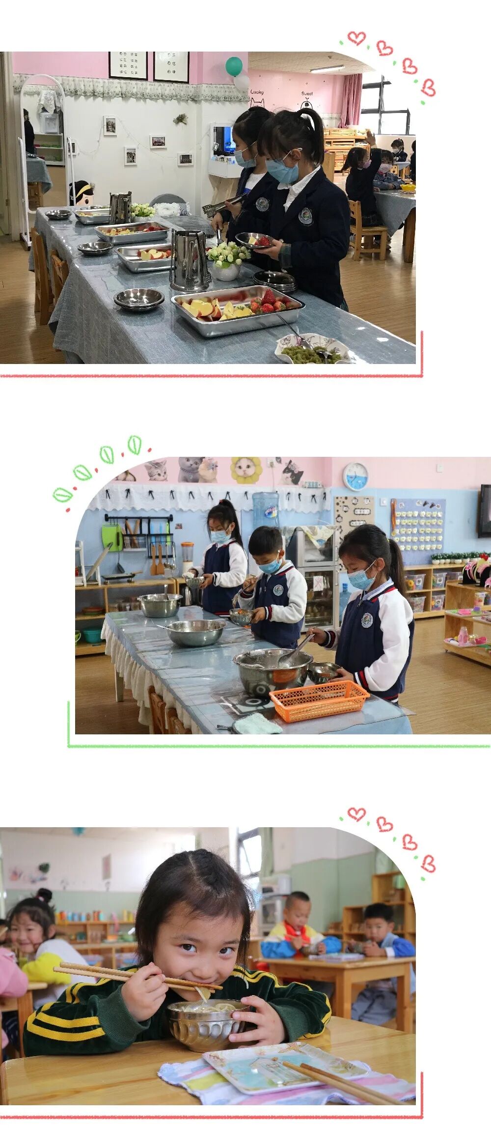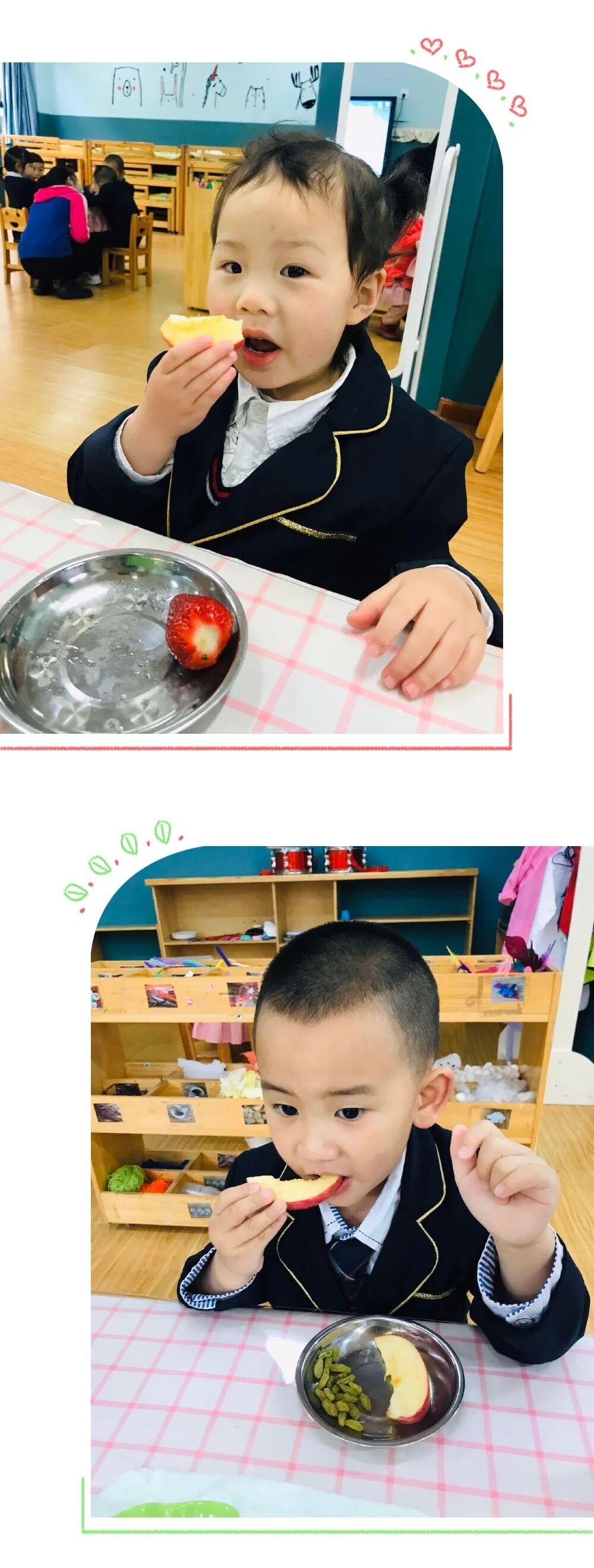 对于孩子们来说,“吃”是一件特别幸福的事情。餐桌上,孩子们细细品尝水果点心,大口吃饭的样子,无一不是在告诉老师与爸爸妈妈:“我真的特别开心。”