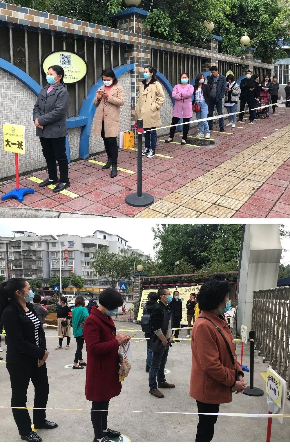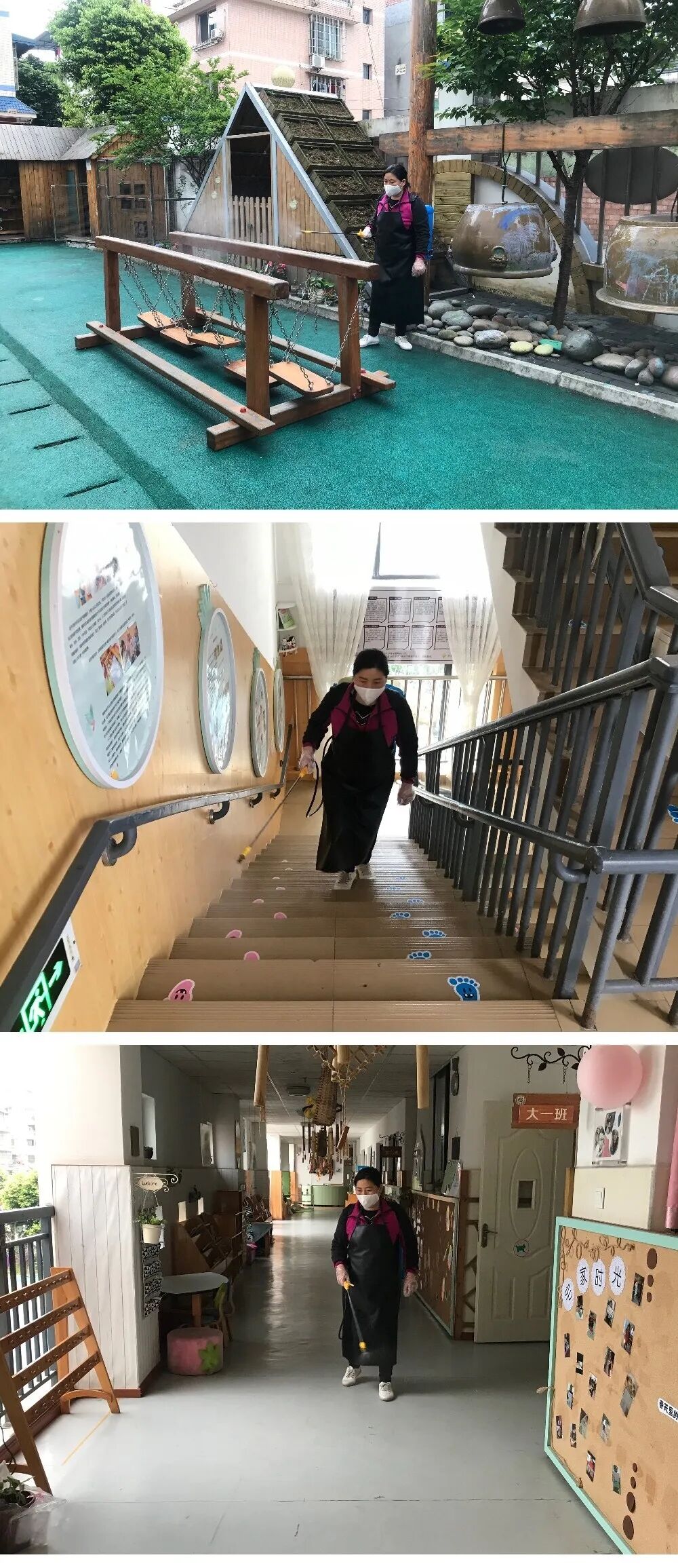 离园时,一切也是井然有序,宝贝们站在停止线里等着爸爸妈妈的到来。宝贝们全部离园后,老师们开始进行消毒打扫。慢慢的,幼儿园又变得如此安静,但生活还在继续,相信明天依然是热闹、元气满满的一天。