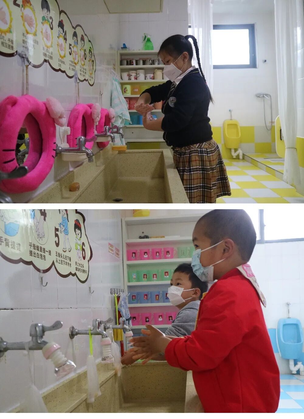 细心的园长妈妈和老师们,在大门处迎接了一批又一批的宝贝,为每个即将入园的孩子们测体温、消毒,把好入园的第一道关卡。孩子们走进教室时,老师们认真地测量并记录着每个孩子的晨间体温,孩子们用七步洗手法洗手后就开启了元气满满的幼儿园一日生活~
