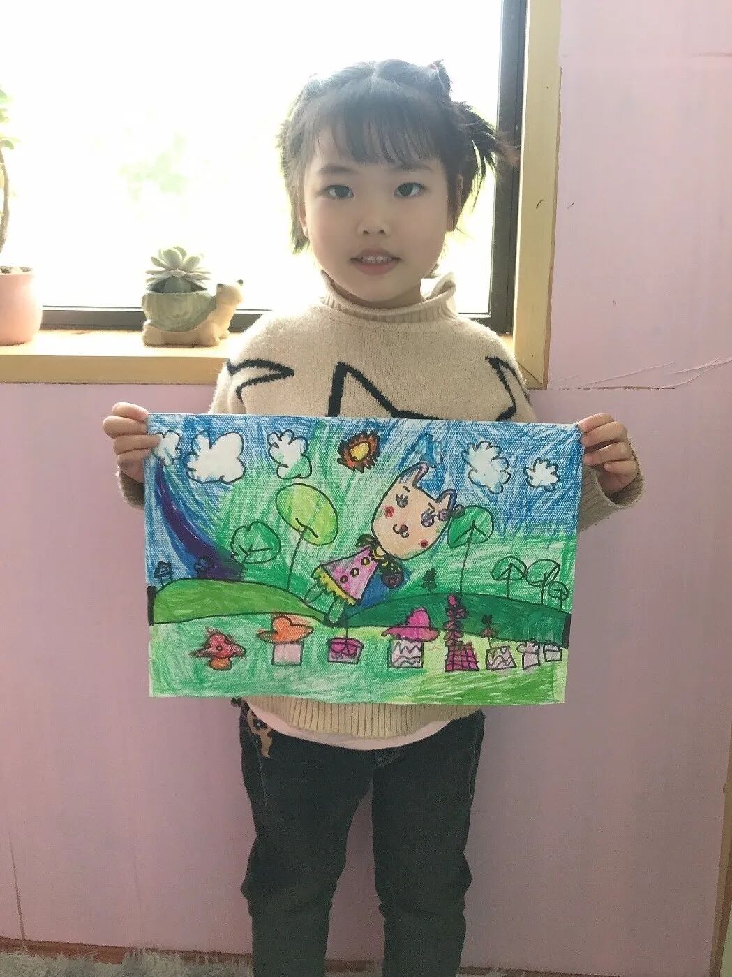 赵宇成: 我最想做的事是春天来的时候在外面画漂亮的风景,和弟弟妹妹一起玩滑滑梯,荡秋千。