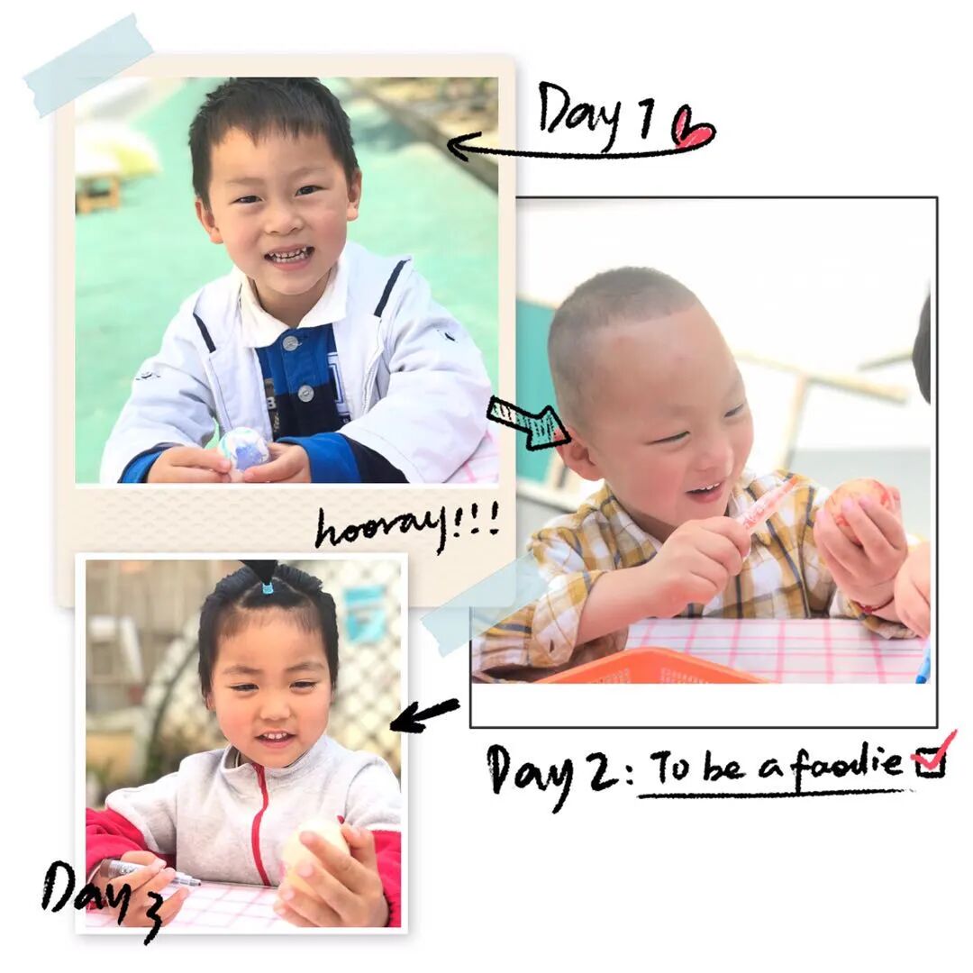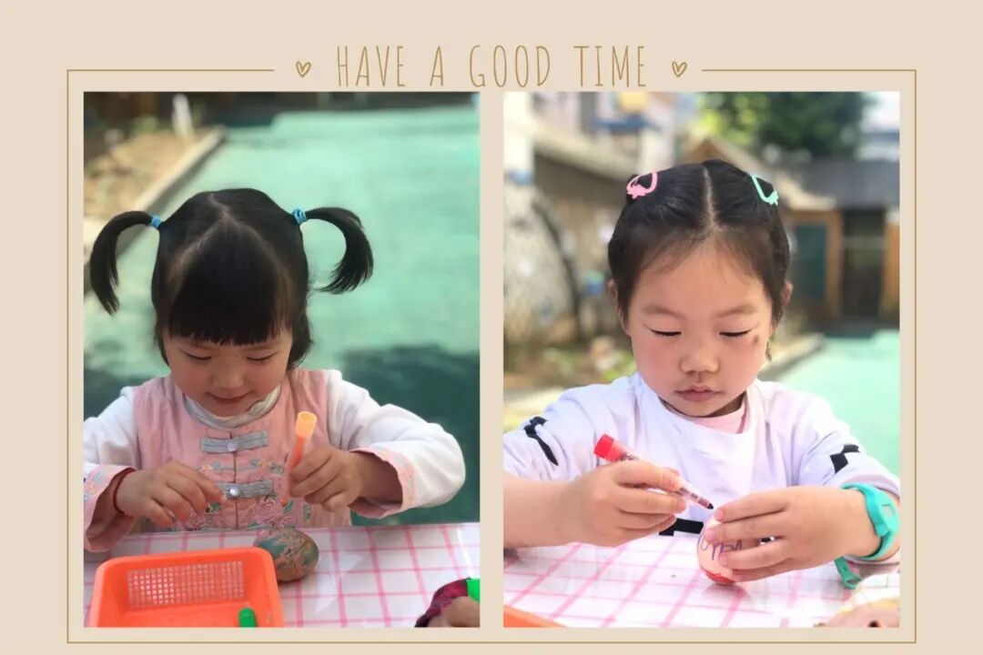 彩蛋描绘“夏”美好,这些蛋宝宝是今天的主角,孩子们决定给蛋宝宝们来个靓丽的大换装!看,孩子们个个想象力丰富,短短的时间里就手绘出了七彩缤纷的蛋娃娃。