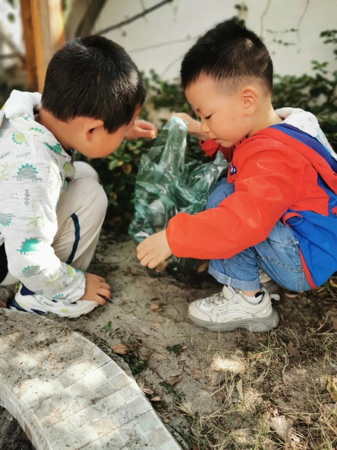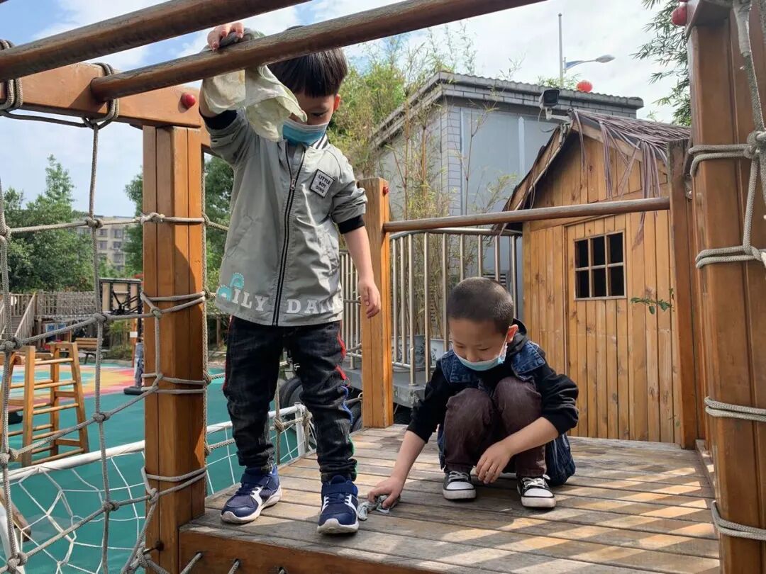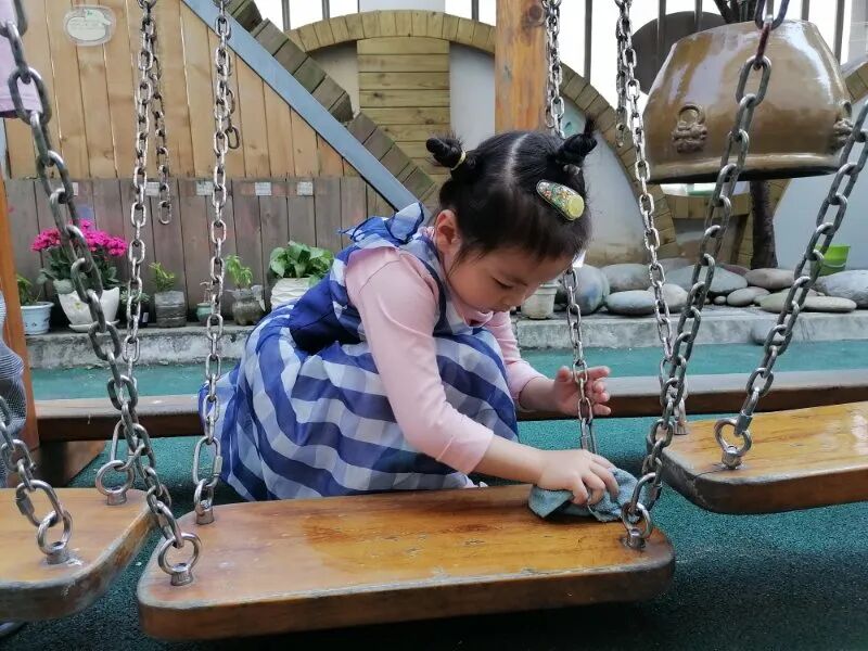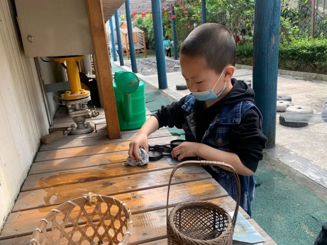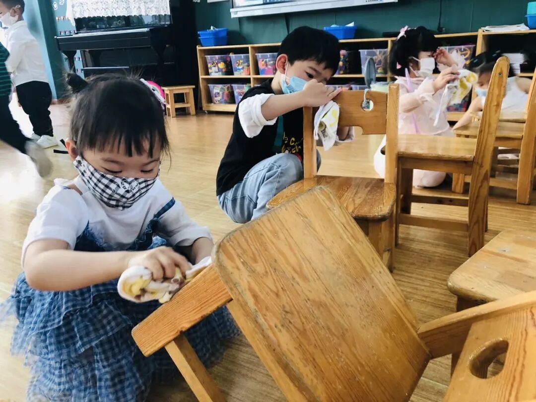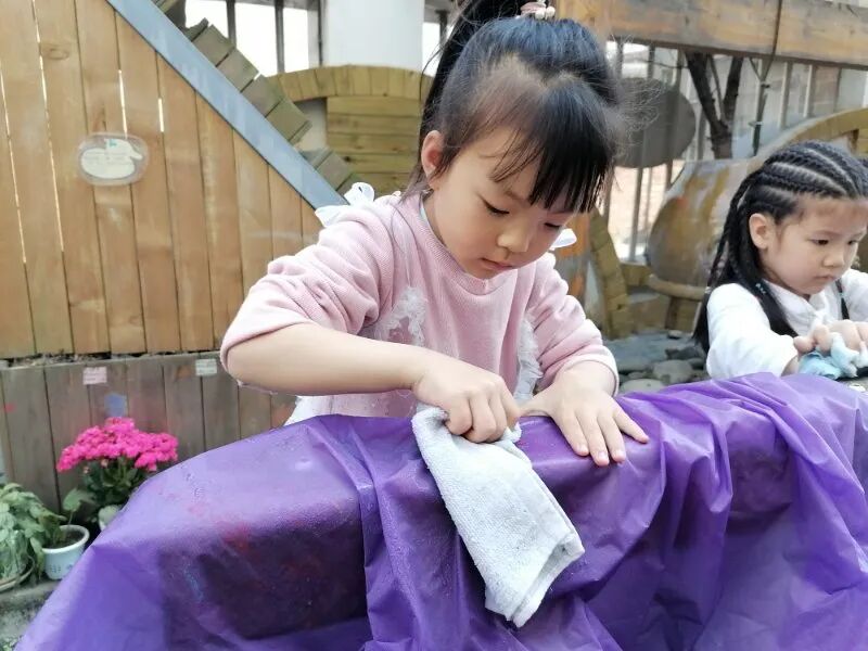 孩子们积极的讨论着他们遇到的问题及解决方式,以集体劳动或小组劳动的形式,齐齐动手,清洁幼儿园班级、户外环境的卫生。